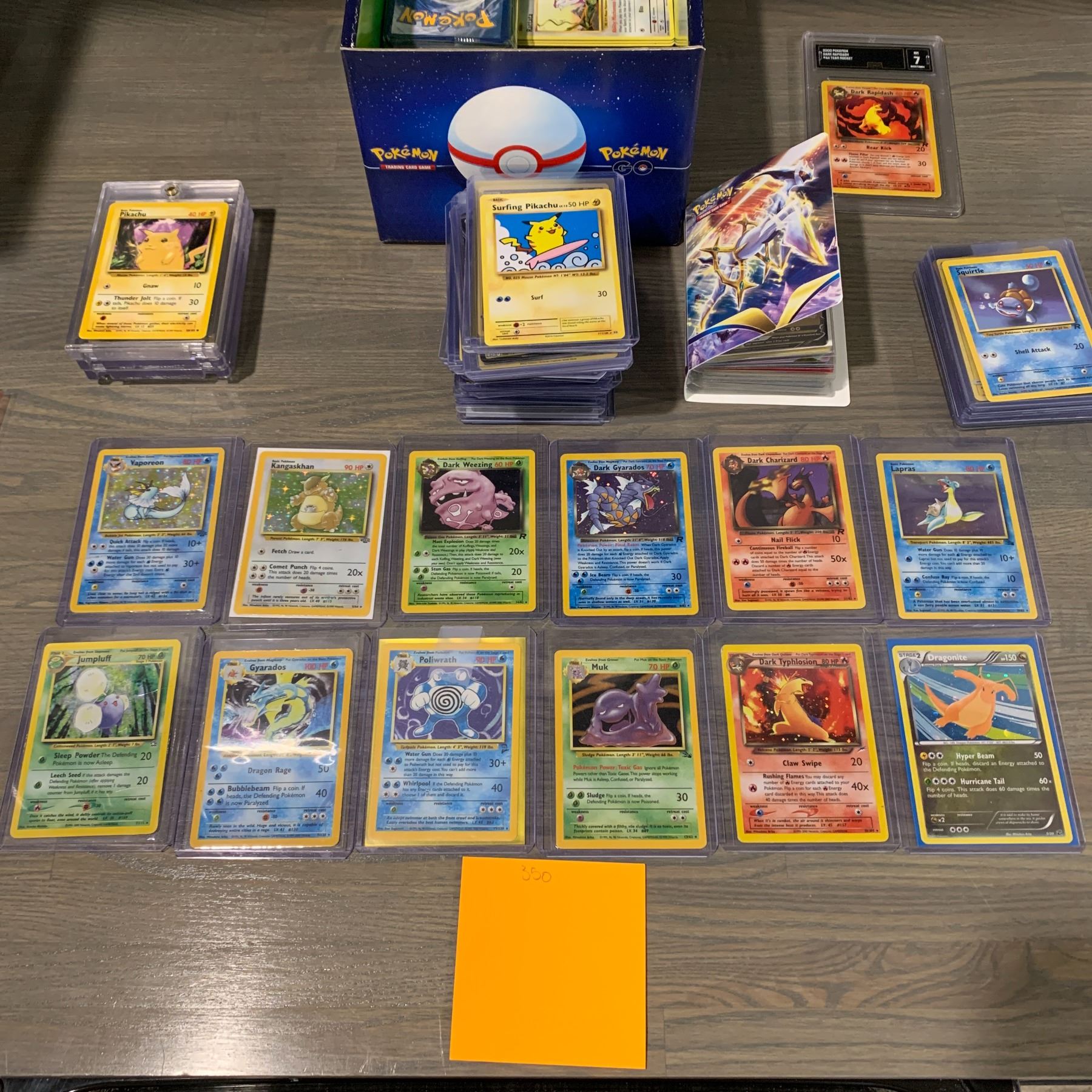 Box filled with 100s of vintage and modern pokemon cards. Tons of holos and super rare Pokémon cards. We are a veteran owned company. Please look at the pictures carefully to determine what you believe the condition of collecitible is. We are currently accepting consignments. Email us a aeronhouse1994@gmail.com or visit our website, www.ahauctionhouse.com. We are currently seeking Star Wars related consignments.