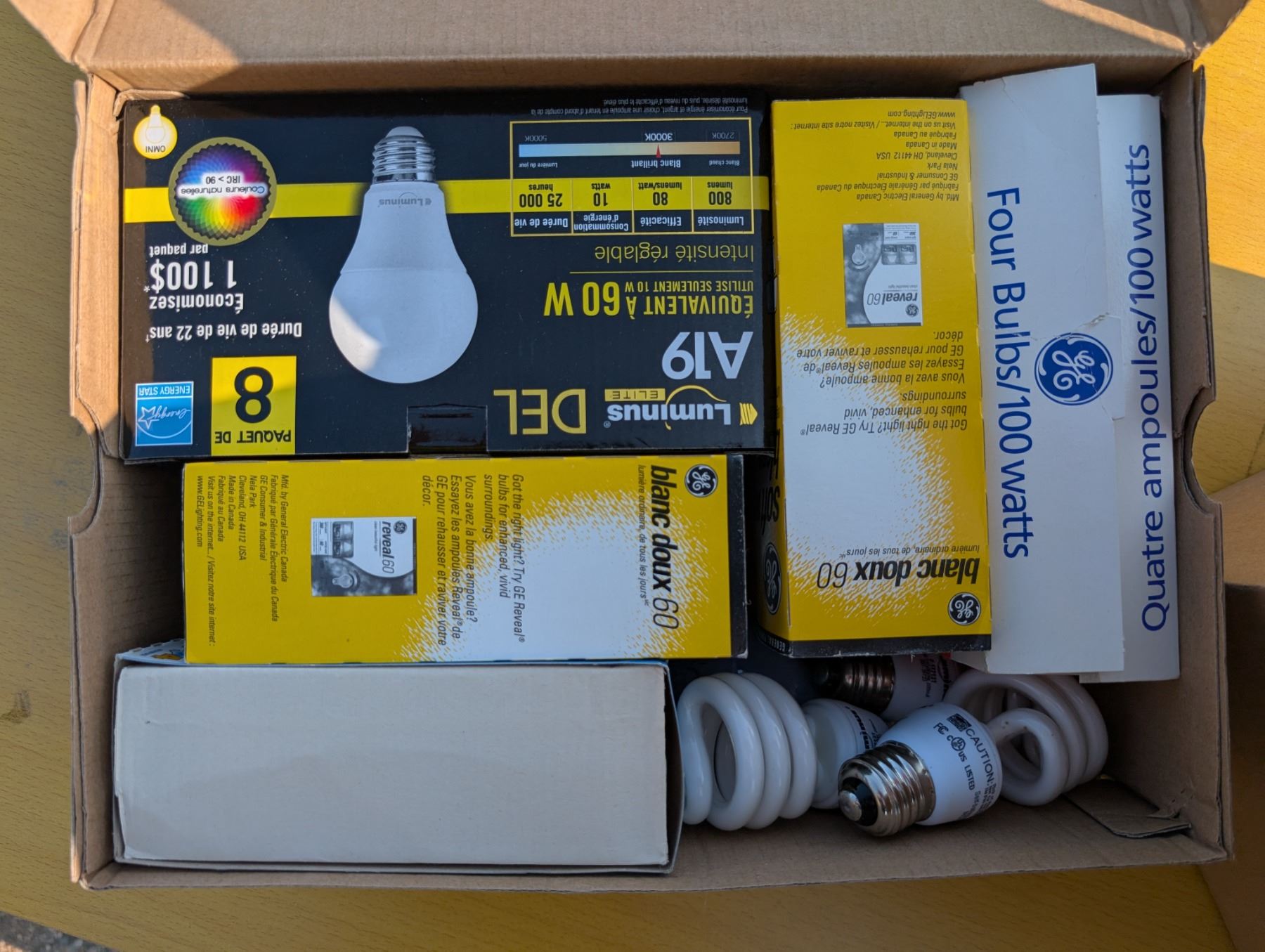Box full of Light Bulbs (New in Box, and variety of sizes)