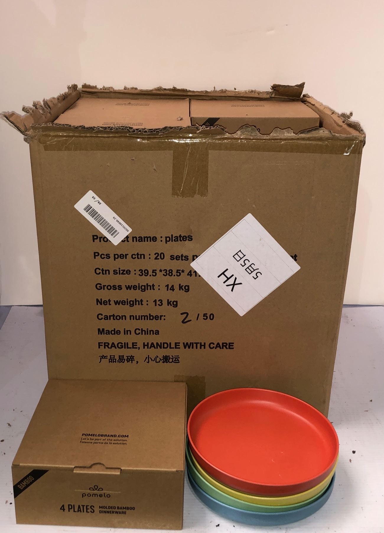 Box full of Molded Bamboo Dinnerware plates (Misc. Colours)