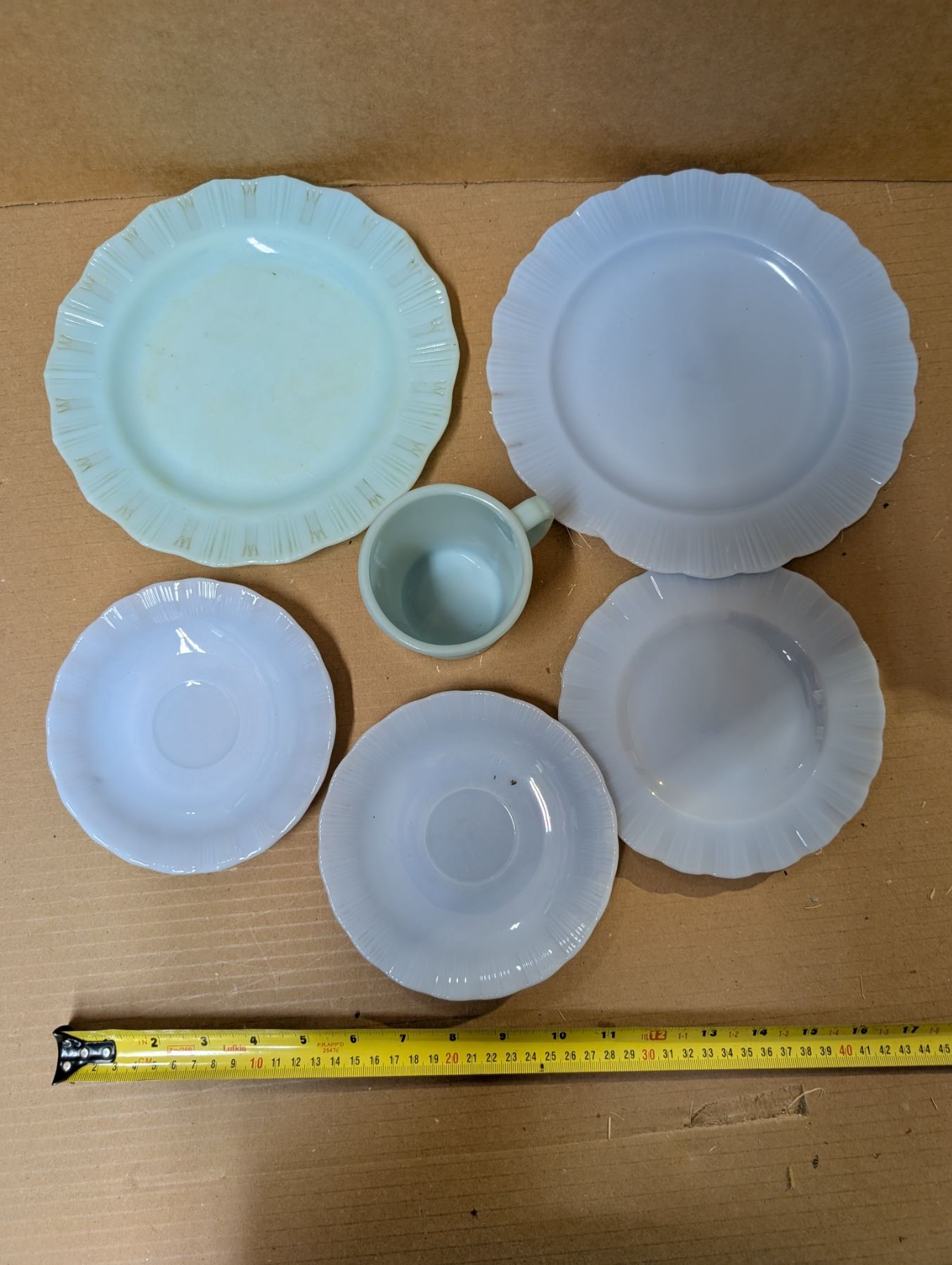 Box full of Vintage Misc. Glass/Dishware (Blue Pyrex Glassware)