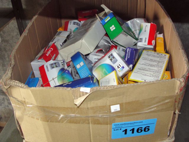 Box full of assorted printer ink cartridges