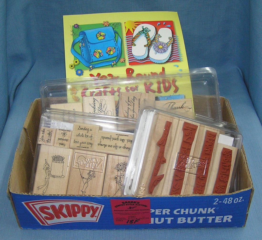 Box full of craft and decorative rubber stamps includes craft book est. value $40.00-$50.00