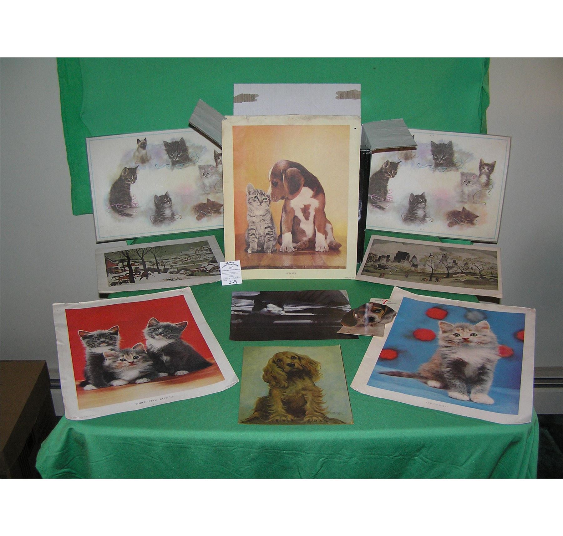 Box full of vintage prints and art work mostly cat and dog related and ephemera est. value $100.00-$125.00