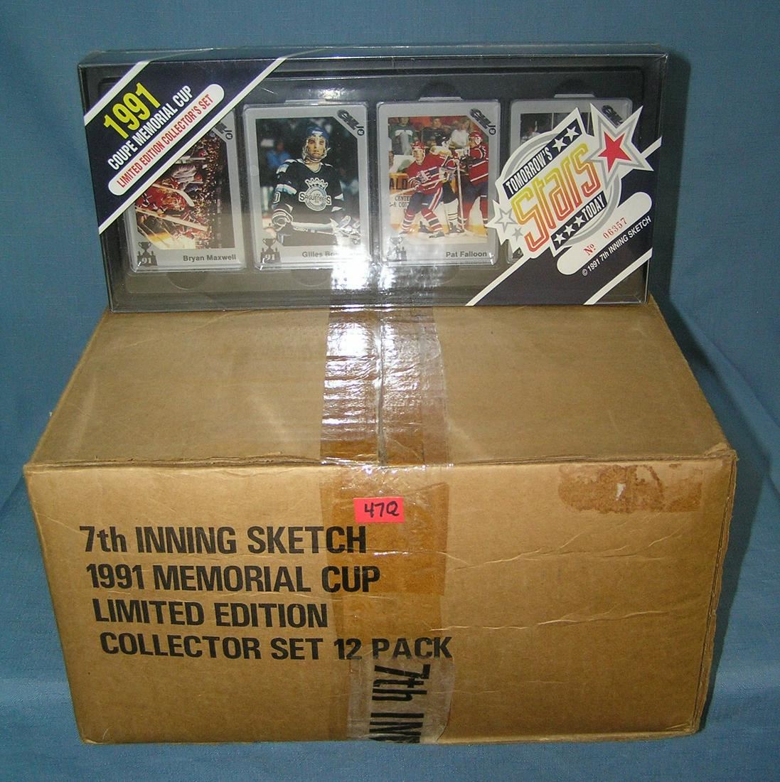 Box full of vintage unopened hockey card sets 12 boxes in a factory sealed case est. value $180.00-$200.00
