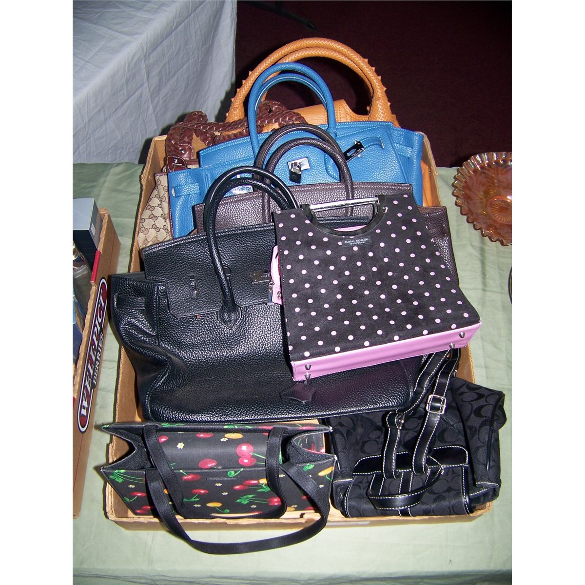 Box lot of (8) Purses (3) Hermes (2) Kate Spade , Gucci, Coach, Fendi (items not authenticated)