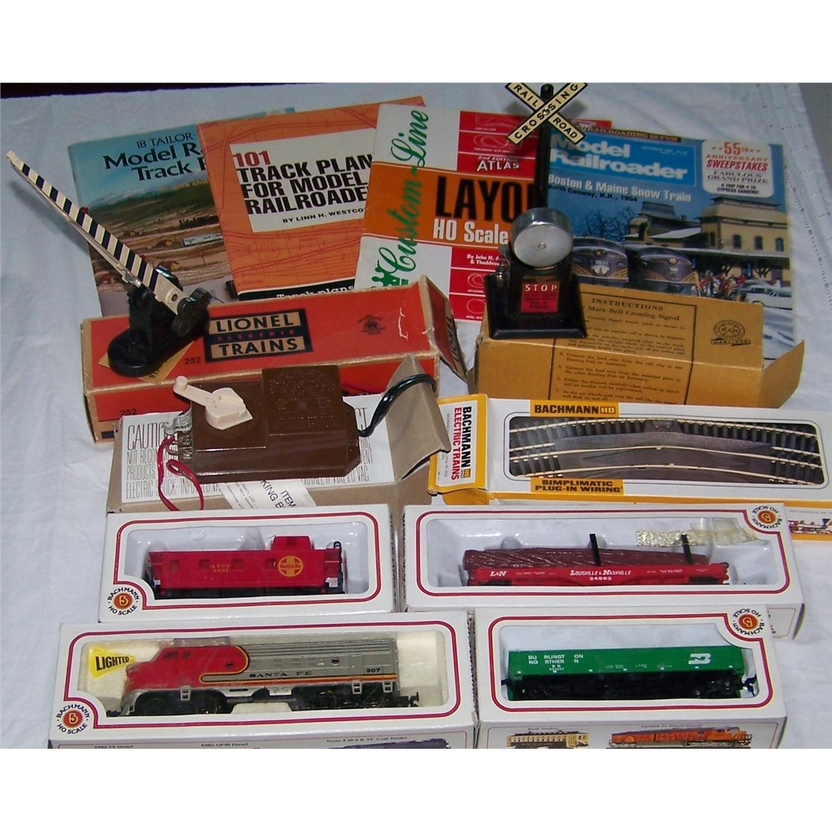 Box lot of Misc. Vintage Trains(in box), Part & Train magazines as shown