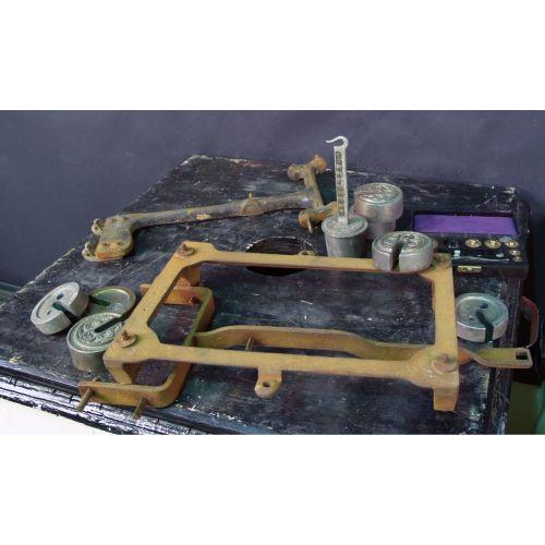 Box lot of miscellaneous scale weights and parts.
