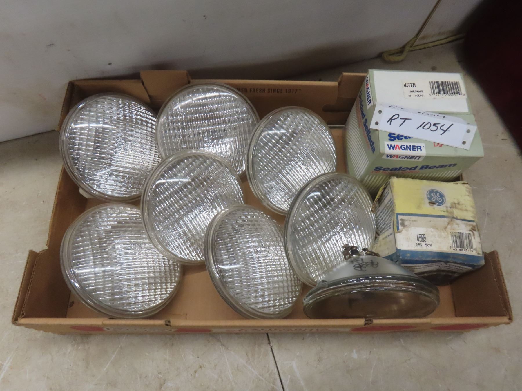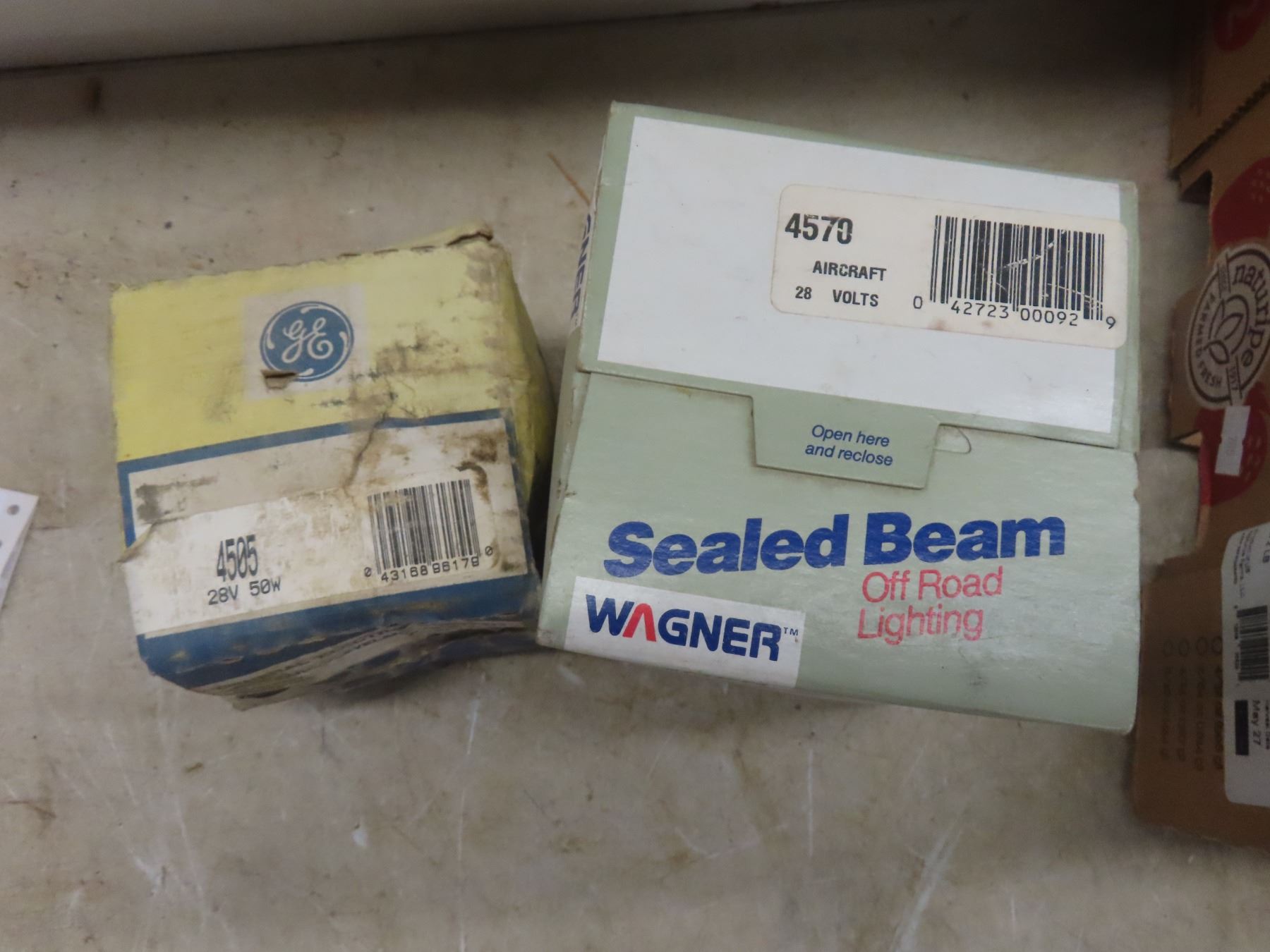 Box of 10 Airplane Lights: 32V (7 — New and Used); 28V (New); 13V (Used)