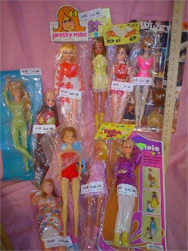 Box of 10 "Barbie Copies" Dolls. New in Bags or Boxes. Some have been opened & re-taped
