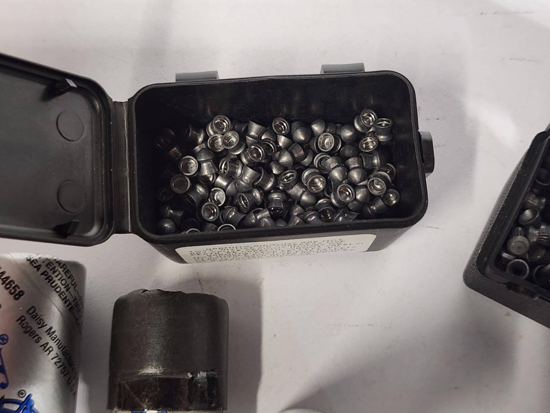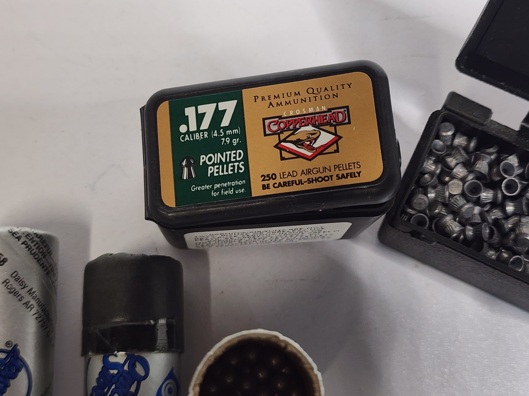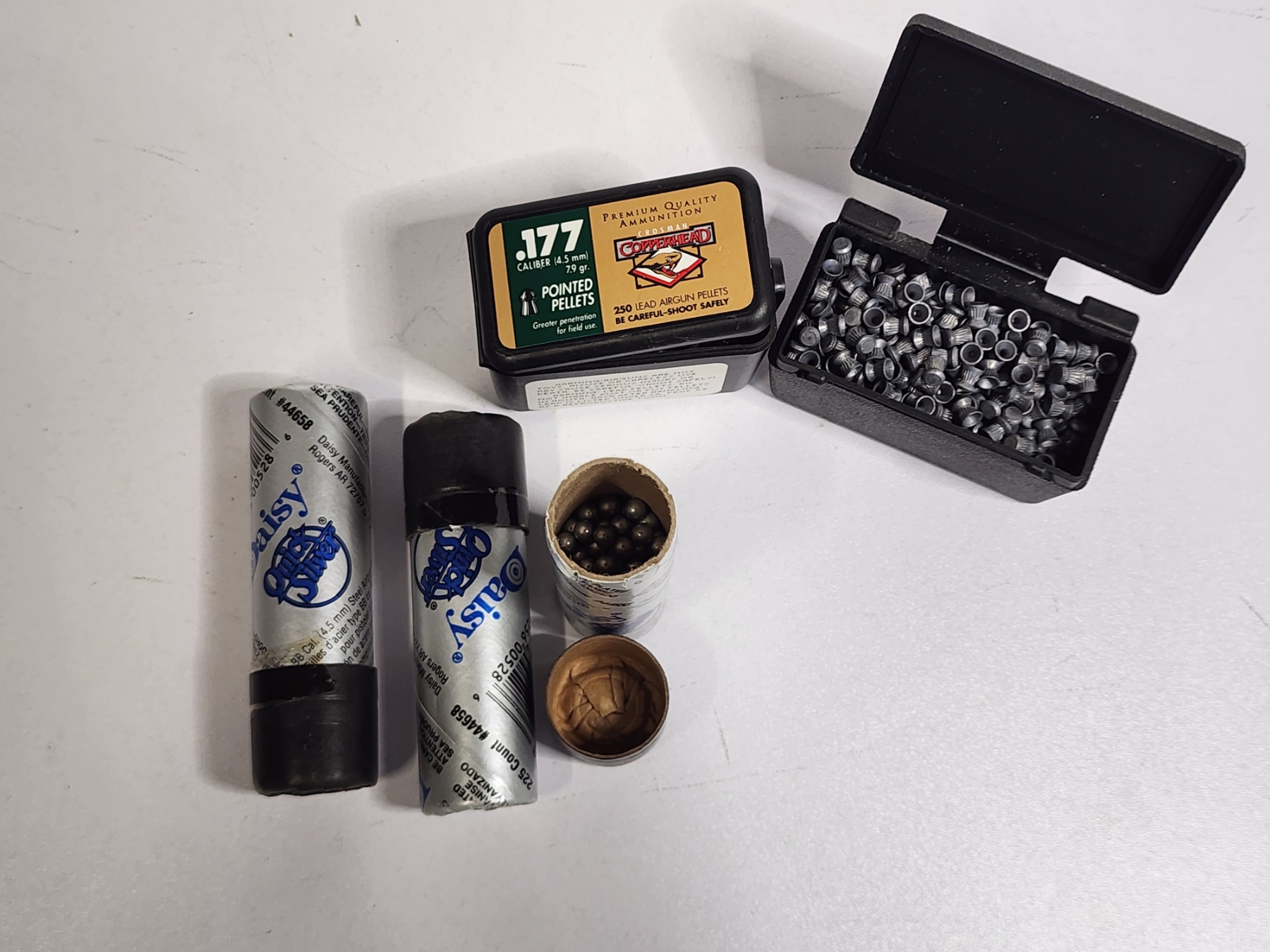 Box of .177 Caliber Pointed Pellets, Box of Pellets, and 3 Tubes of 4.5mm BB Gun Ammo