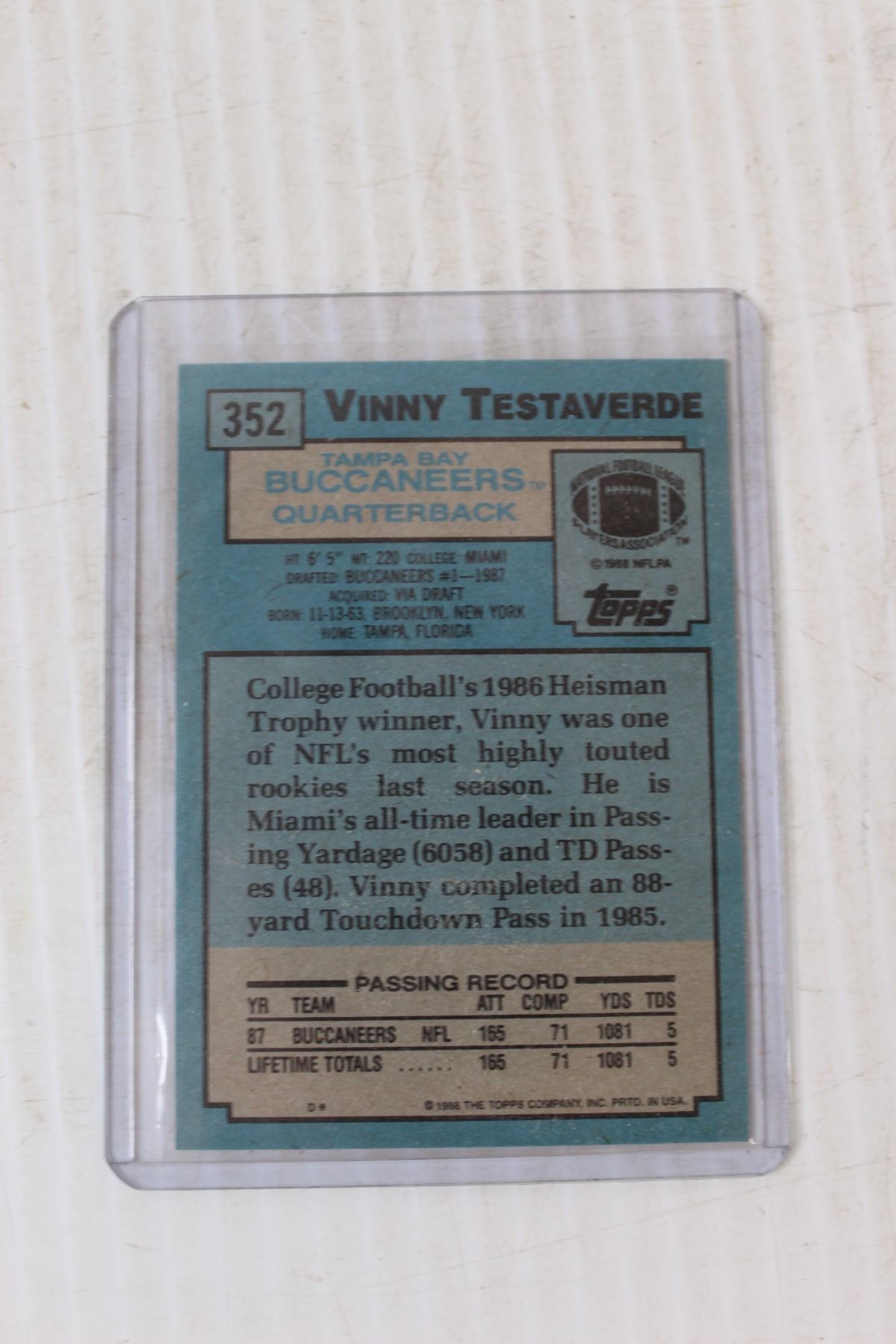 Box of 1988 Topps NFL Trading Cards- Vinny Testaverde Rookie