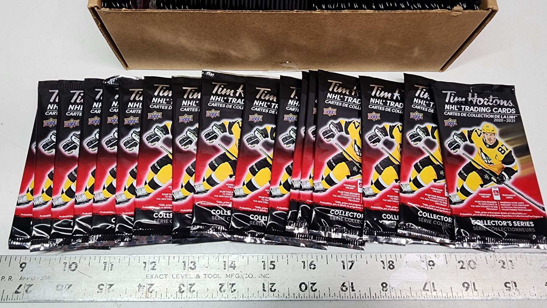 Box of 2020-21 Tim Horton's UpperDeck NHL trading card sealed packs