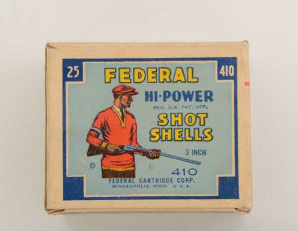 Box of 25 Federal Hi-Power 3” .410 shot shells in very good condition. Est.: $25-$50.