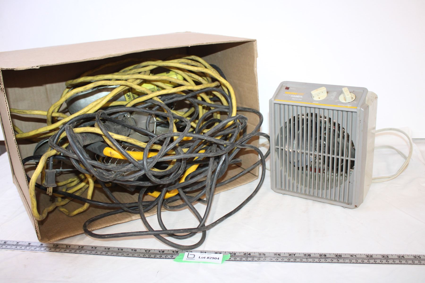 Box of (4) Trouble Lights and a Electric Heater (Untested)