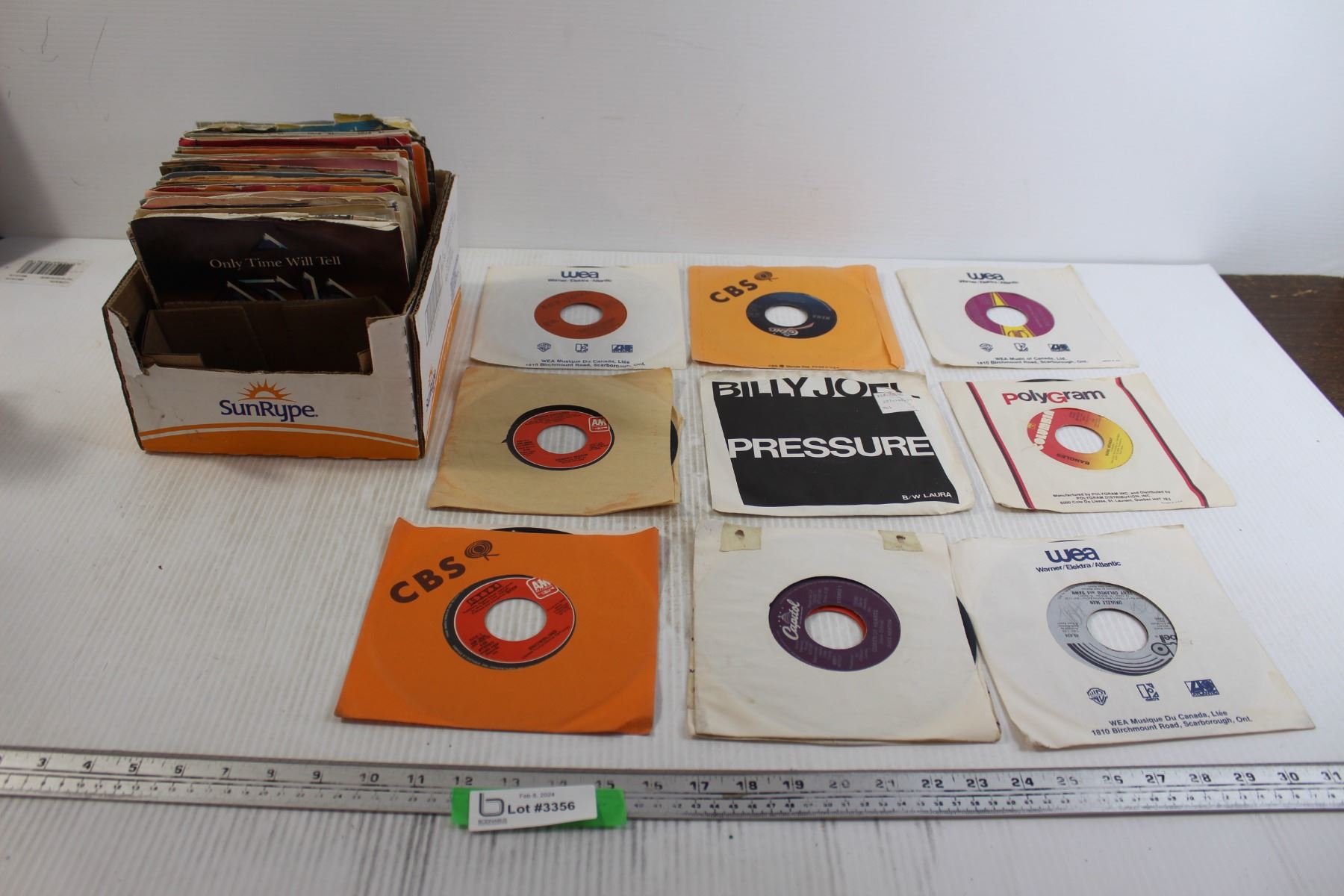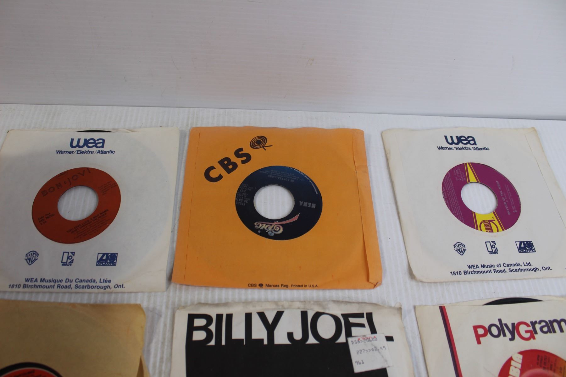 Box of Assorted 7" Vinyl Records - Billy Joel, Bon Jovi, Misc.