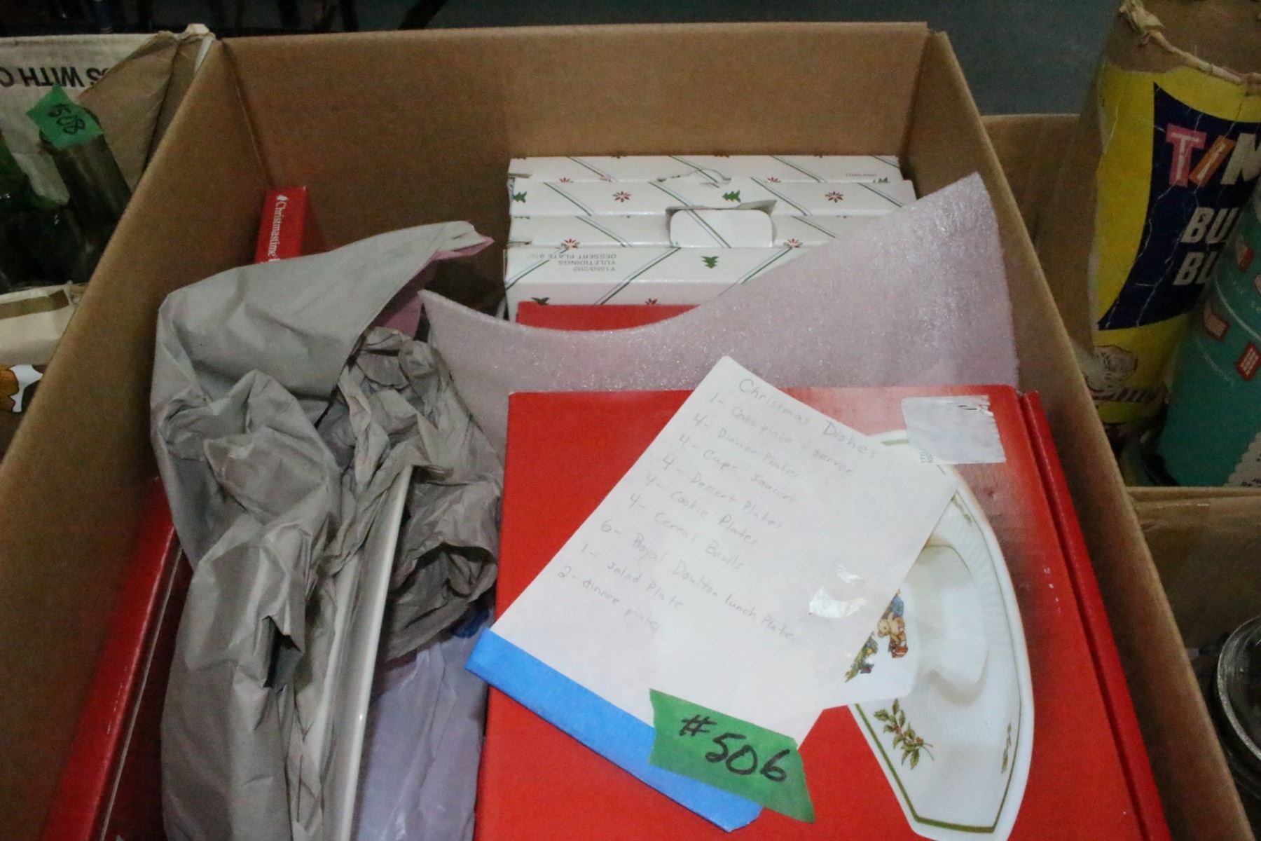 Box of Assorted Christmas Dishes - Plates, Cups, Saucers, Bowls, etc.