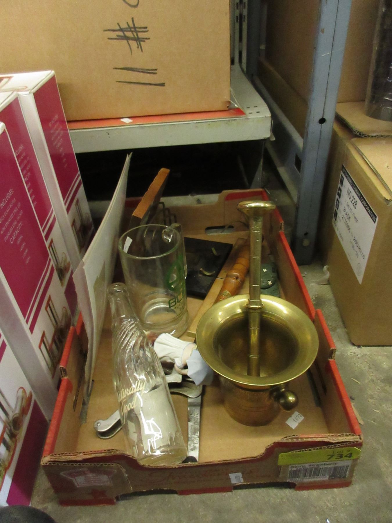 Brass mortar & pestle & more.
