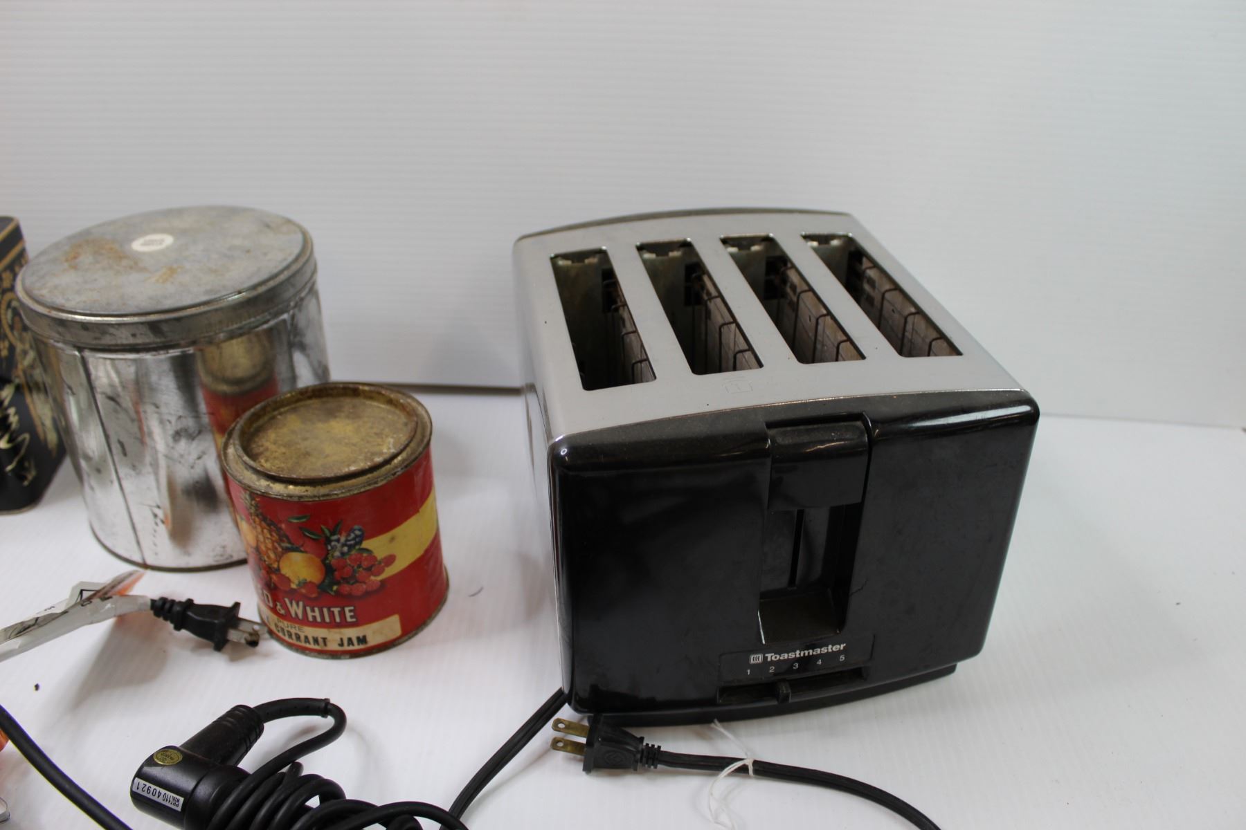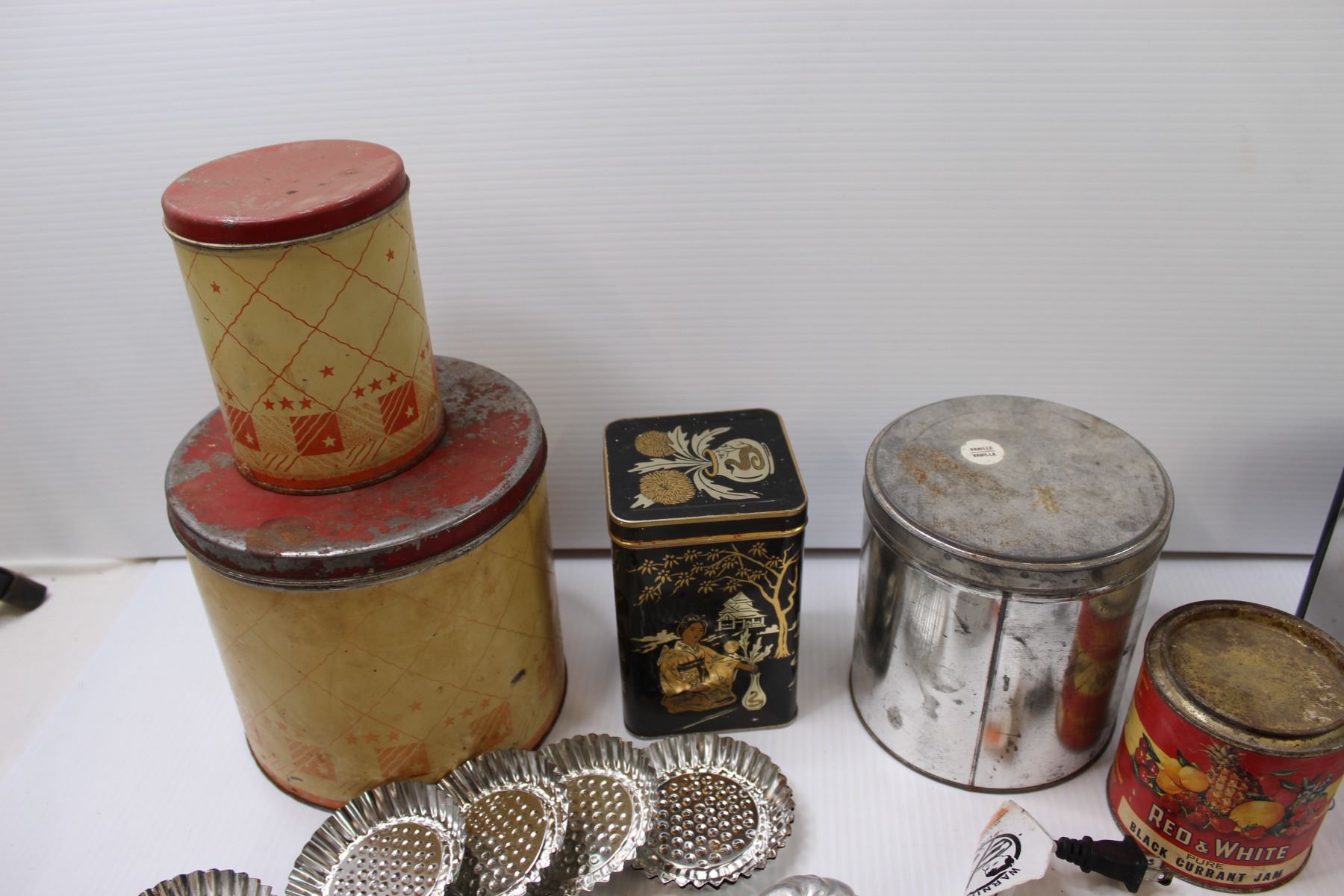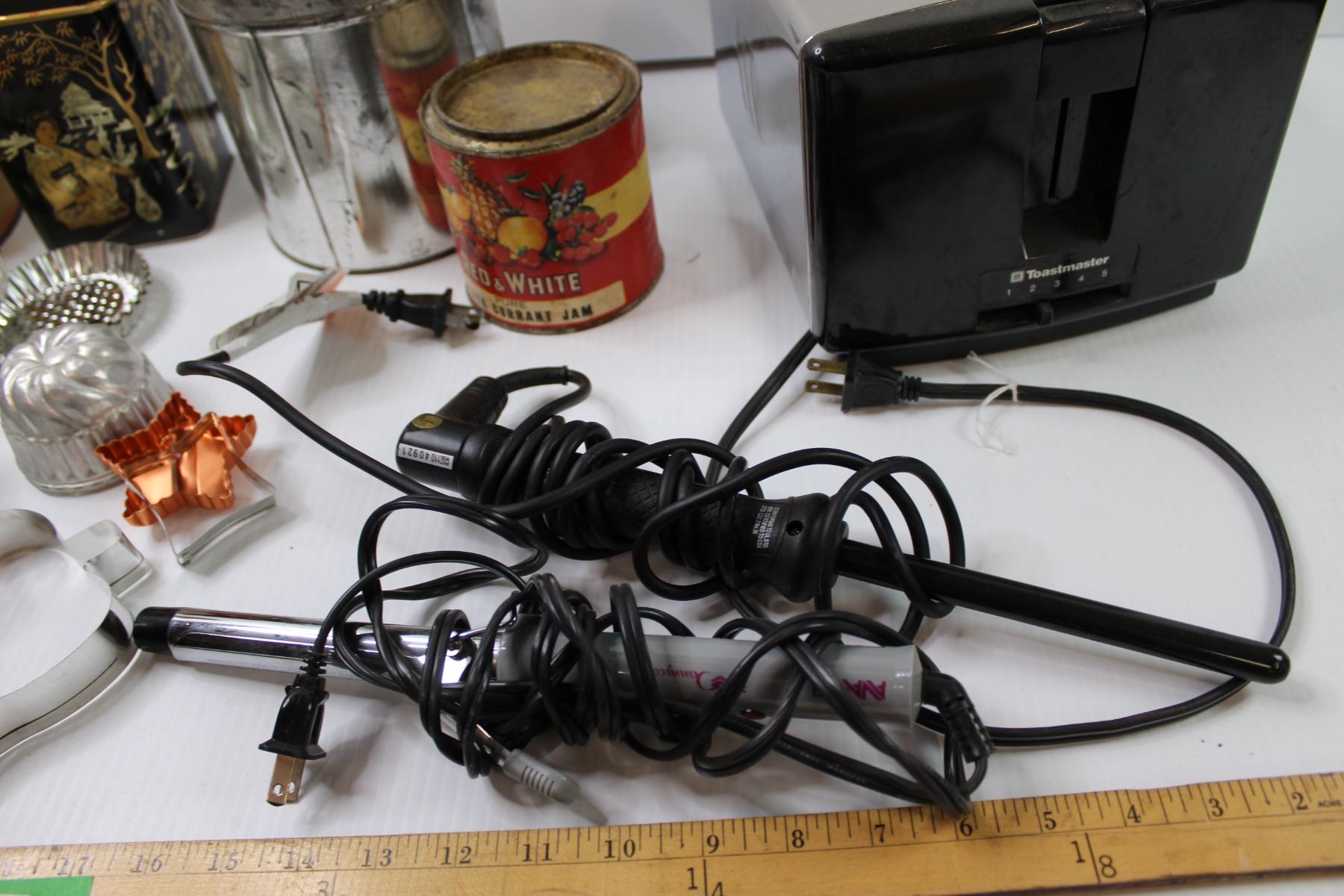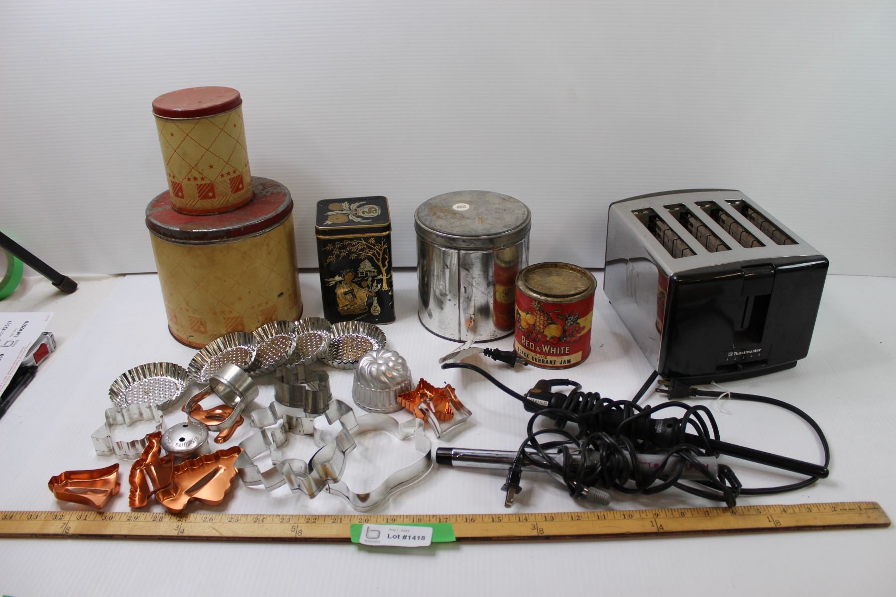 *Box of Assorted Household Items - Tins, Tart Shell Tins, Toaster