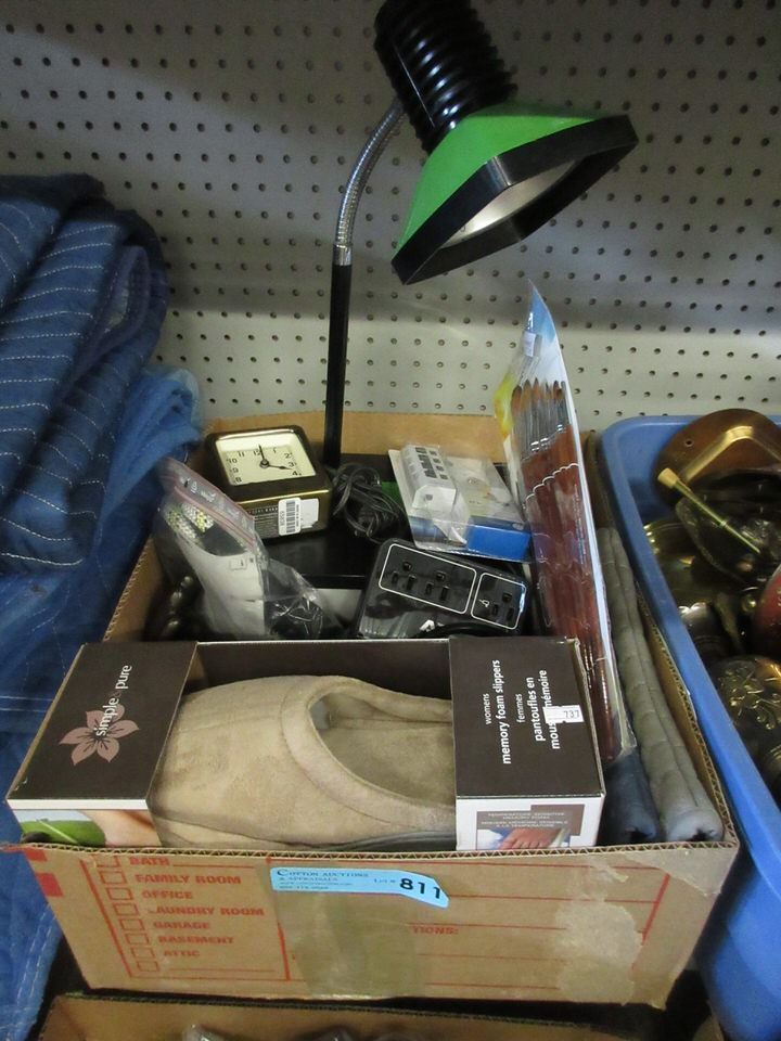 Table lamp, electronics, clock, slippers & more