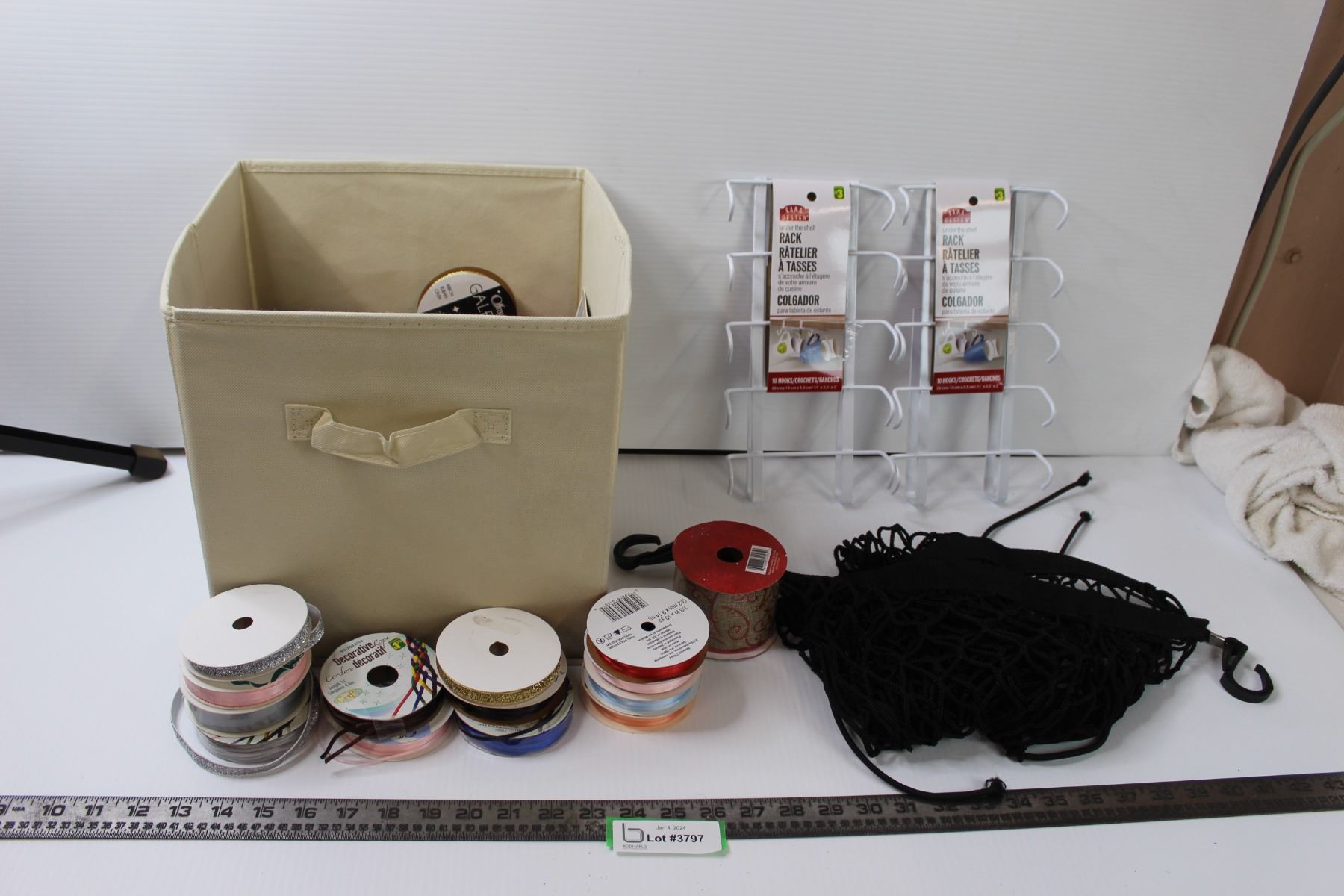 Box of Assorted Ribbons, (2) Under Shelf Racks, Netting