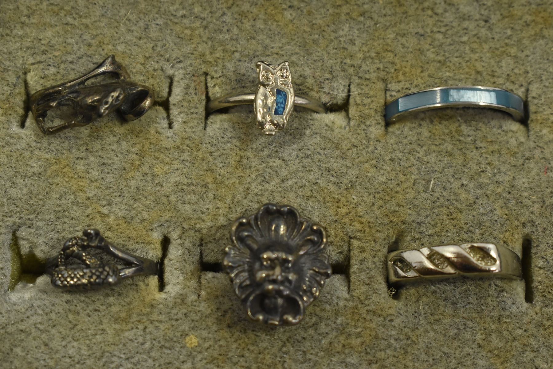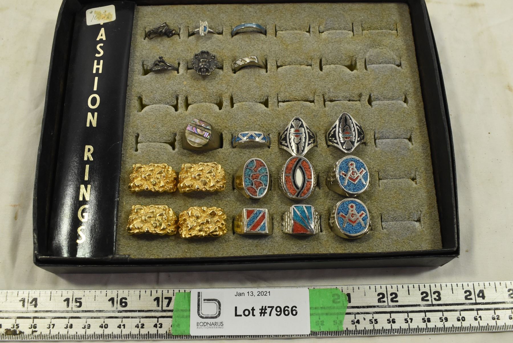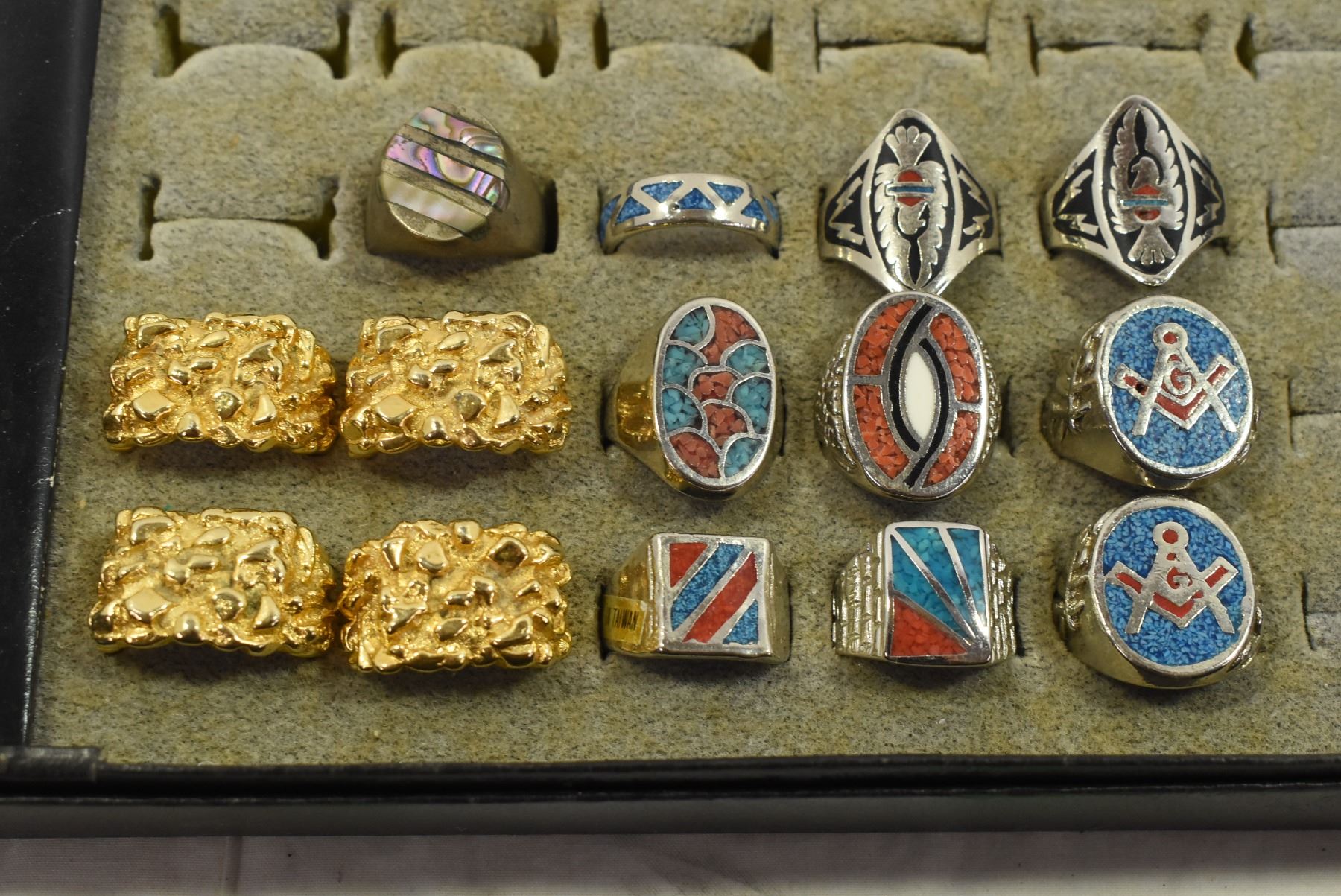 Box of Assorted Rings – Free Mason, Animals, Gold Nugget Styles