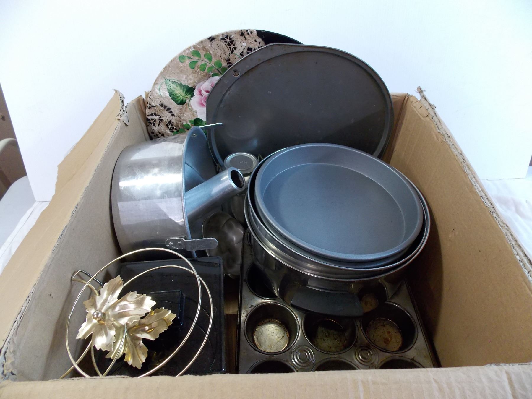 Box of Cookware - Pizza Pan, Pie Pans, muffin pans, large pot