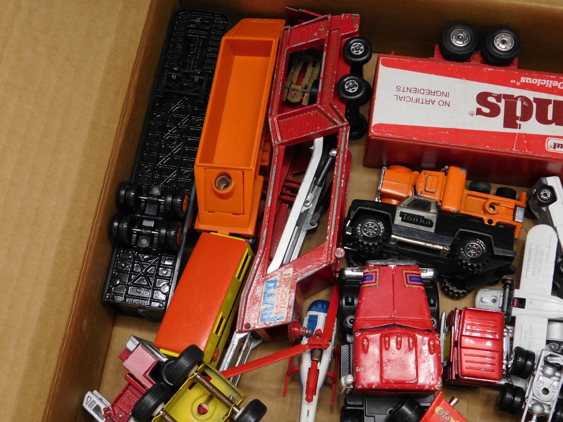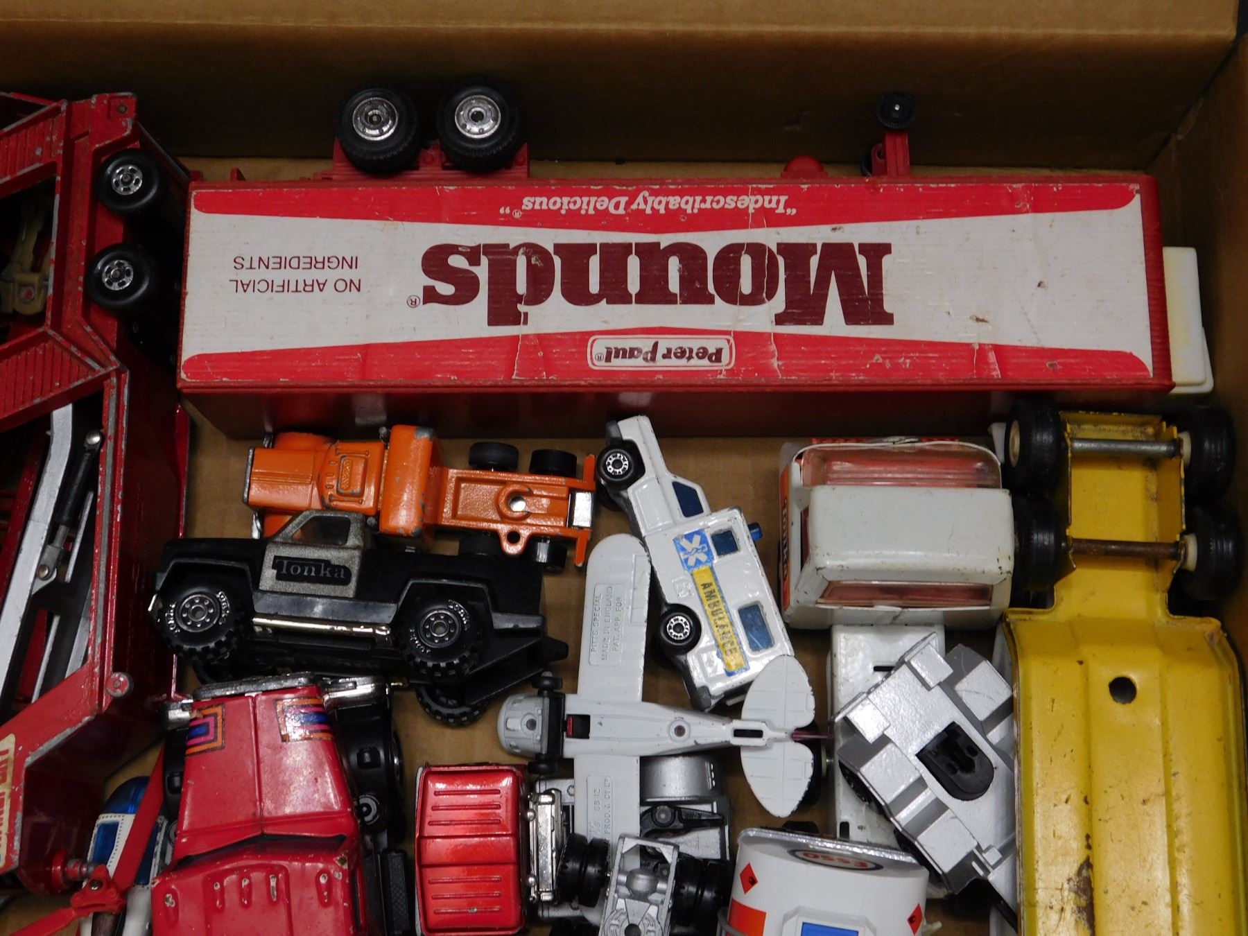 Box of Die Cast Cars, Hot Wheels, Matchbox, Tonka, Majorette, Etc