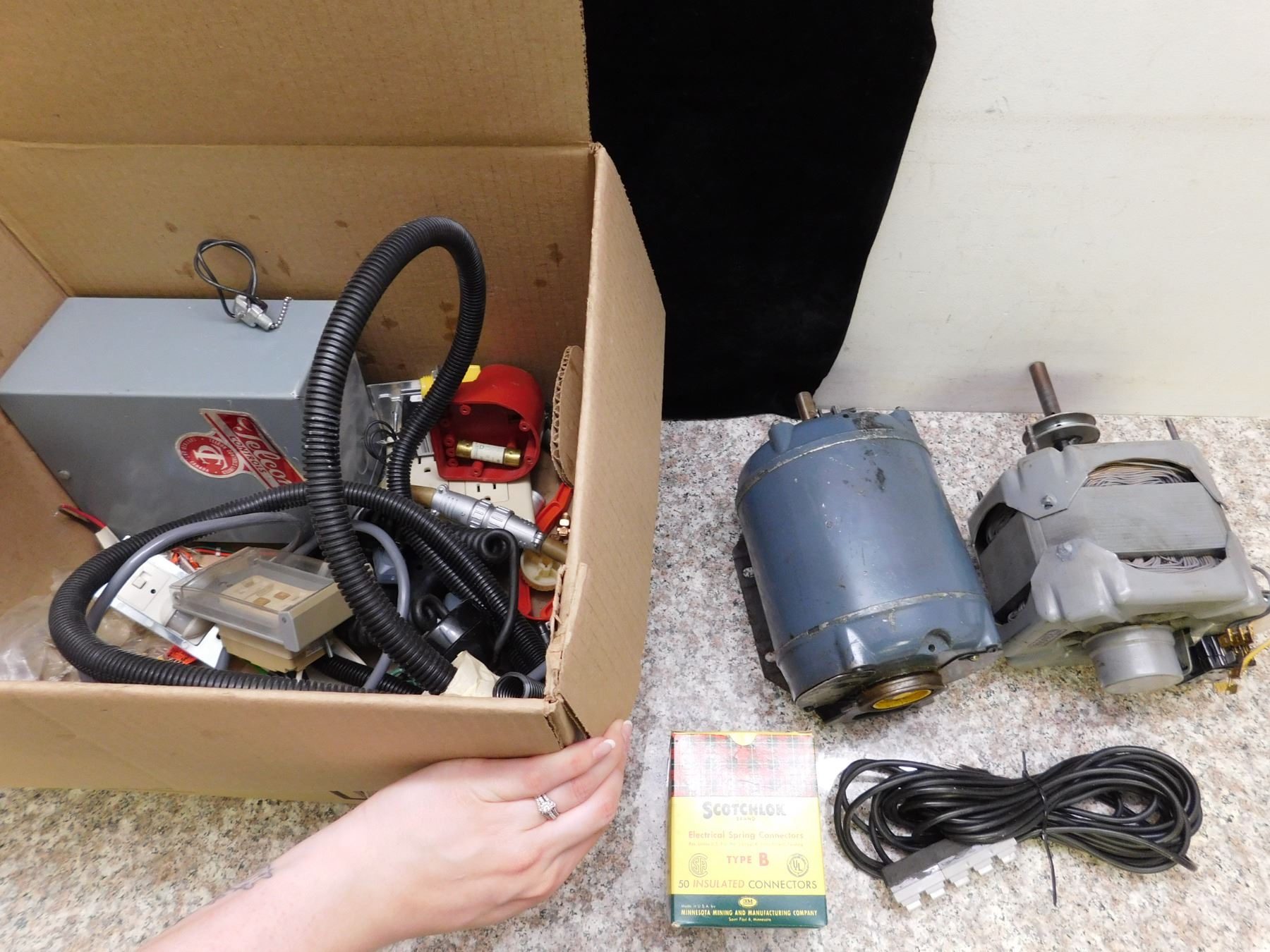 Box of Electric Motors, Century SPF48 General Electric 5KH41KT20S, Electrical Parts & Pieces