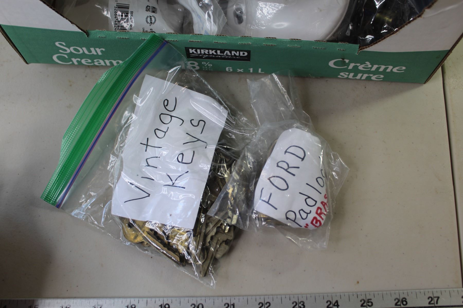 Box of Electrical Items - Vintage Keys - Ford Padlock