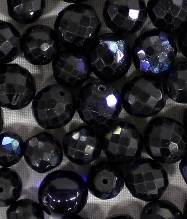 Box of Faceted Antique Russian Blue Bohemian Faceted Glass Beads, approximately 122 beads with the largest measuring .5''D, also included are 2 cobalt blue trade beads with the largest measuring 5/8''D