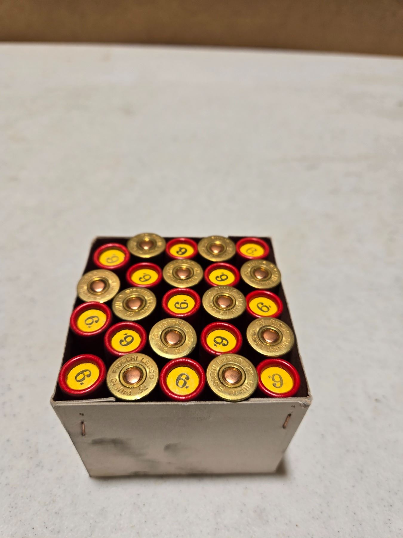 Box of Fiocchi 32 Gauge shot shells. PAL required to purchase.
