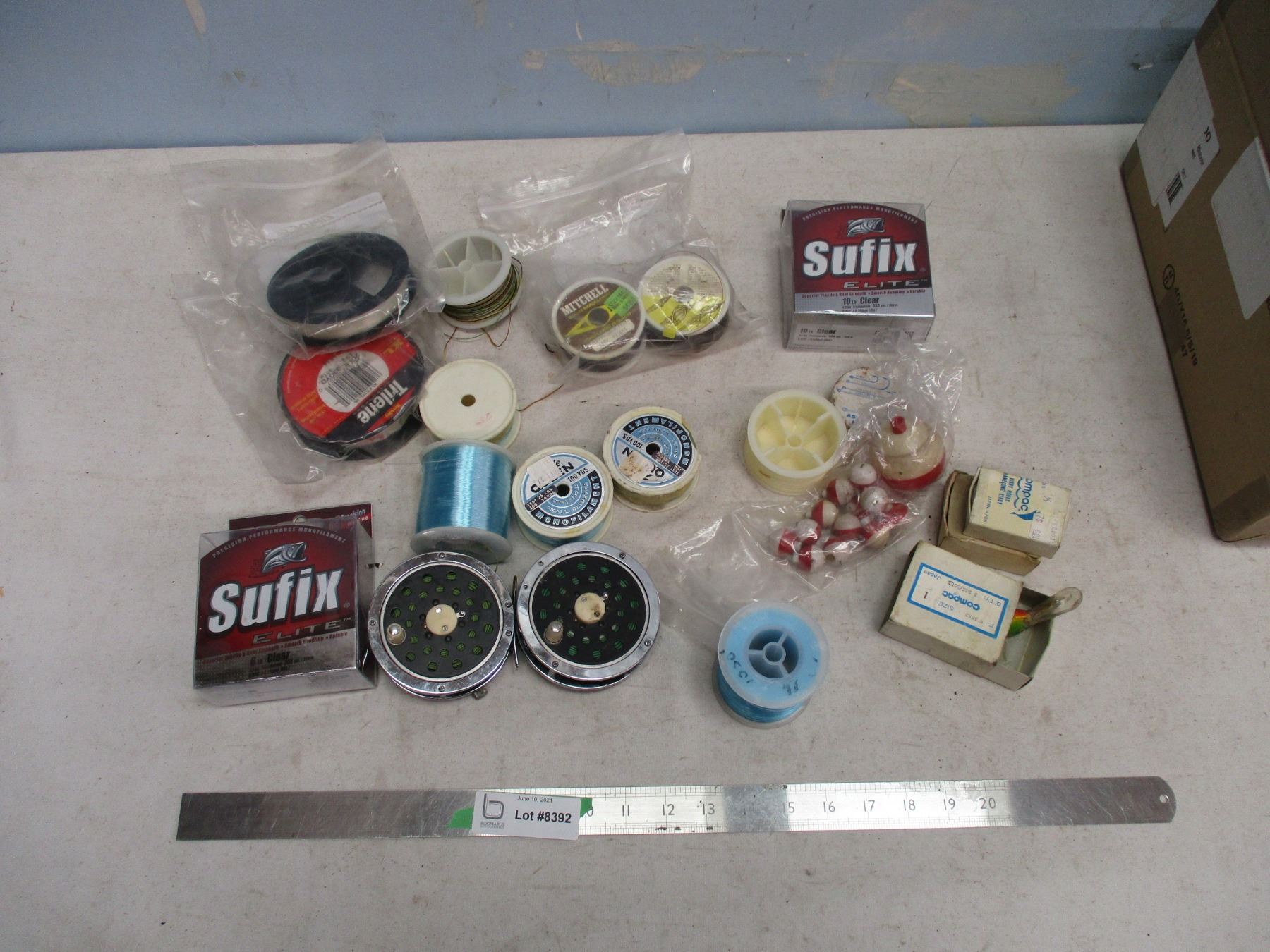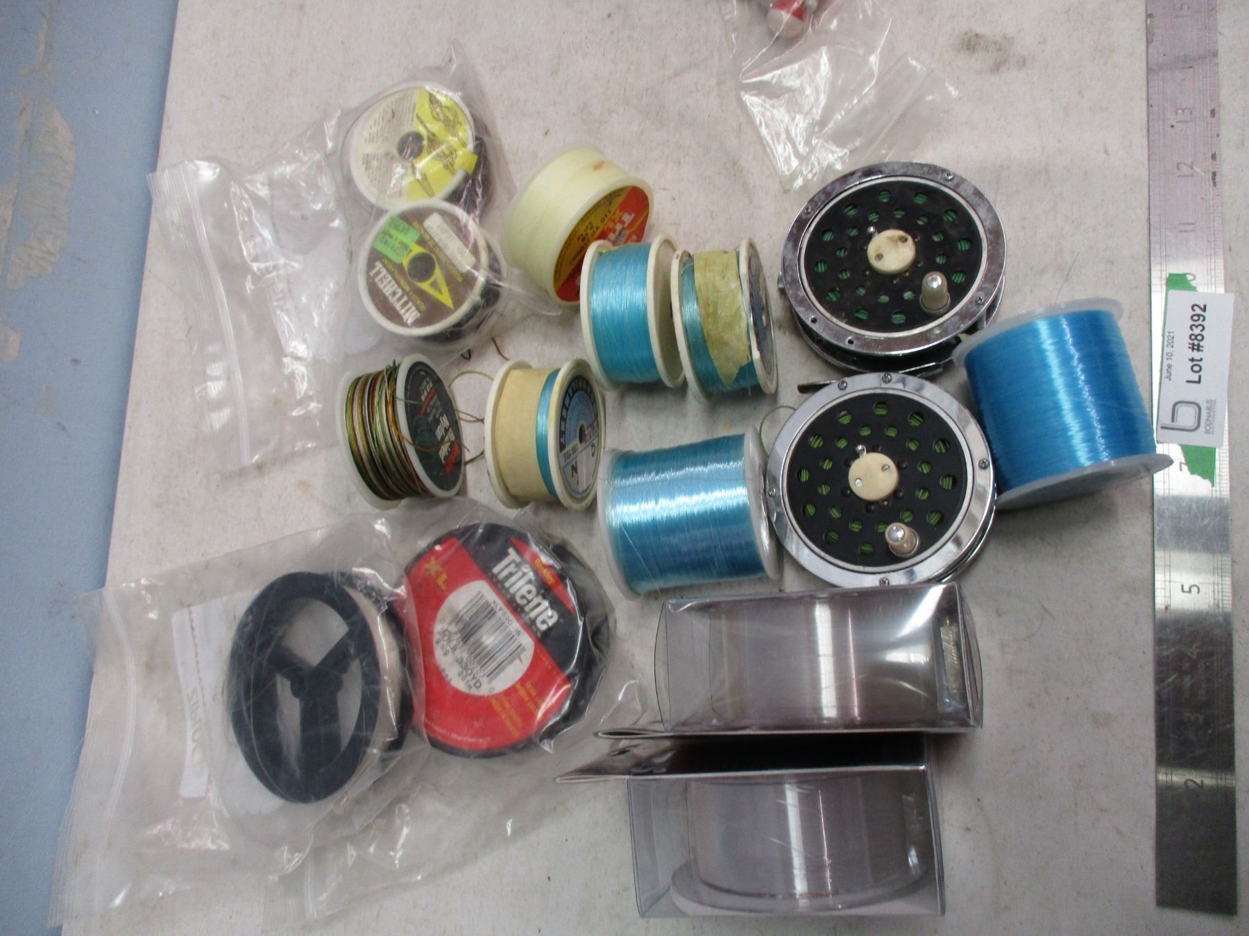 Box of Fishing Reels and Assorted Fishing Line