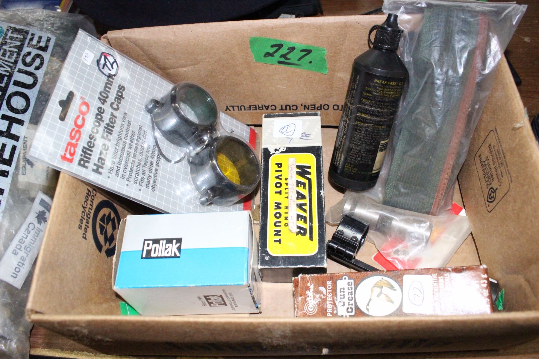 Box of Gun Related Misc.(scope mounts; gun grease, etc.)