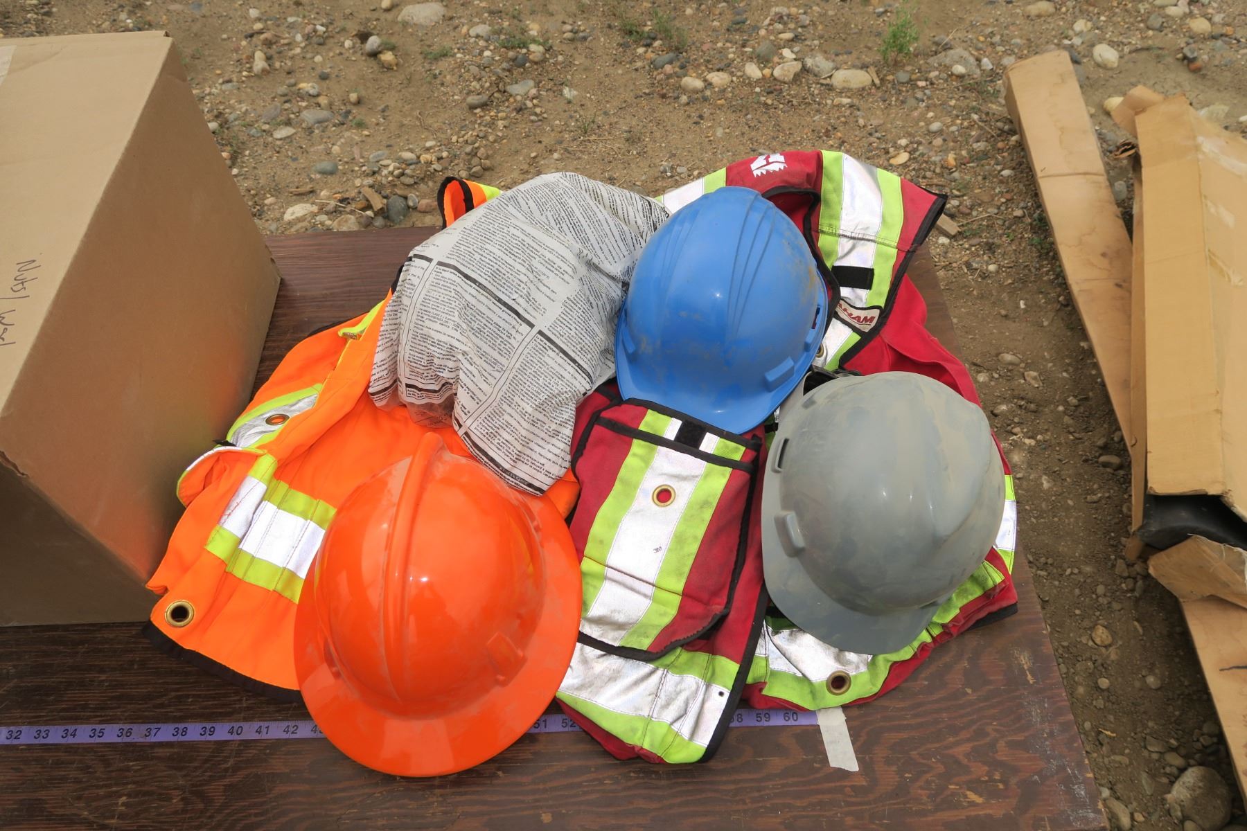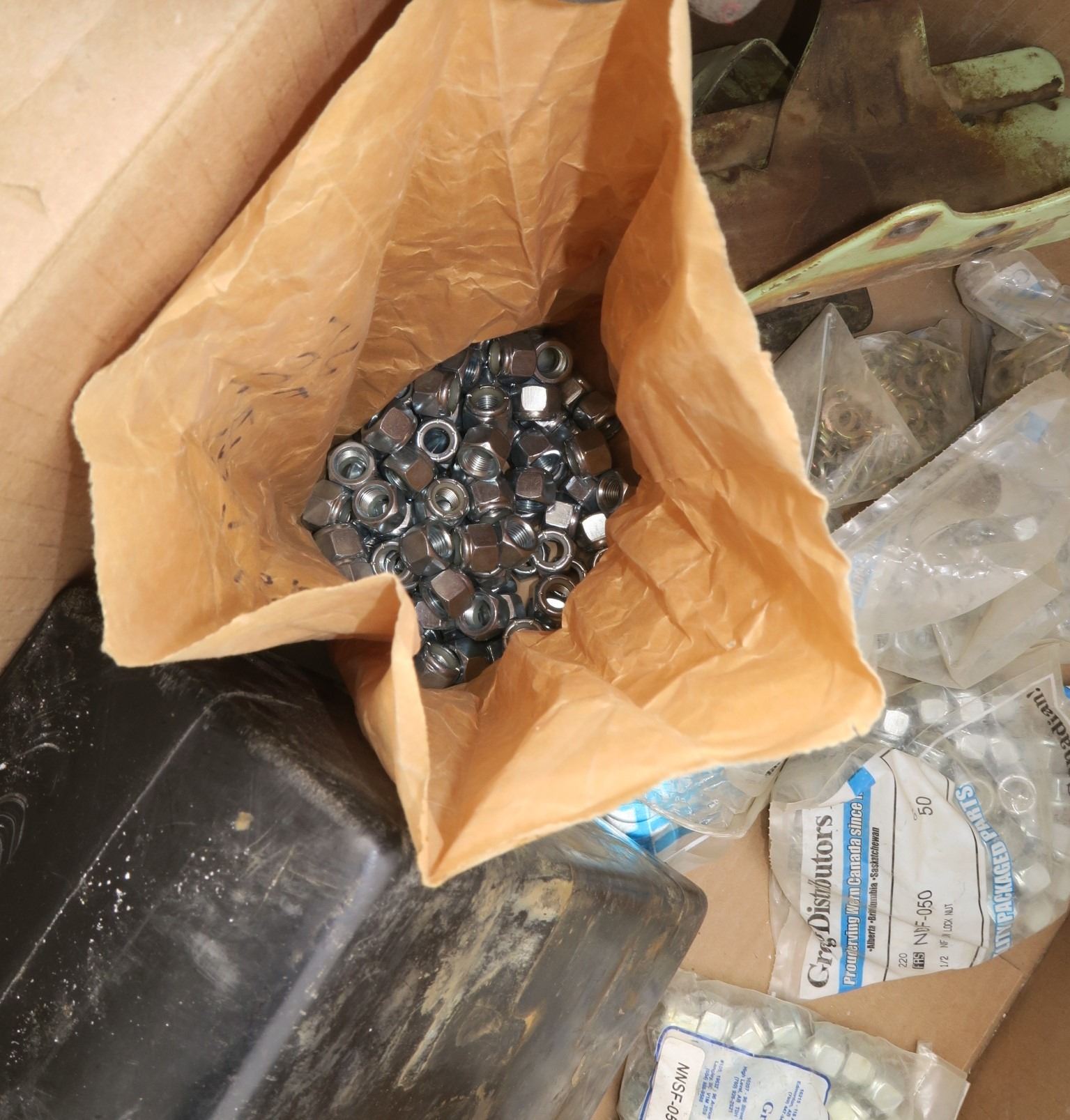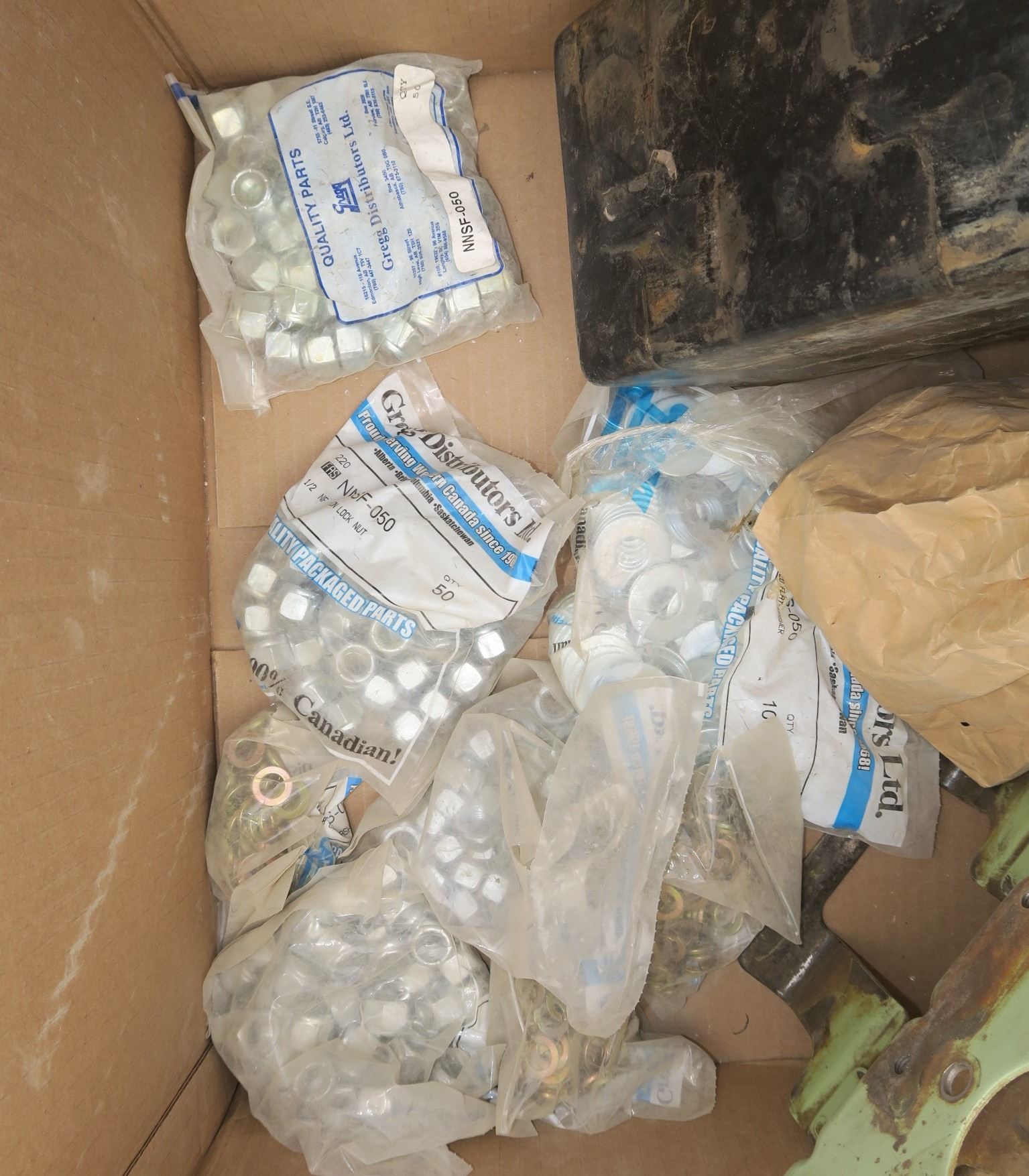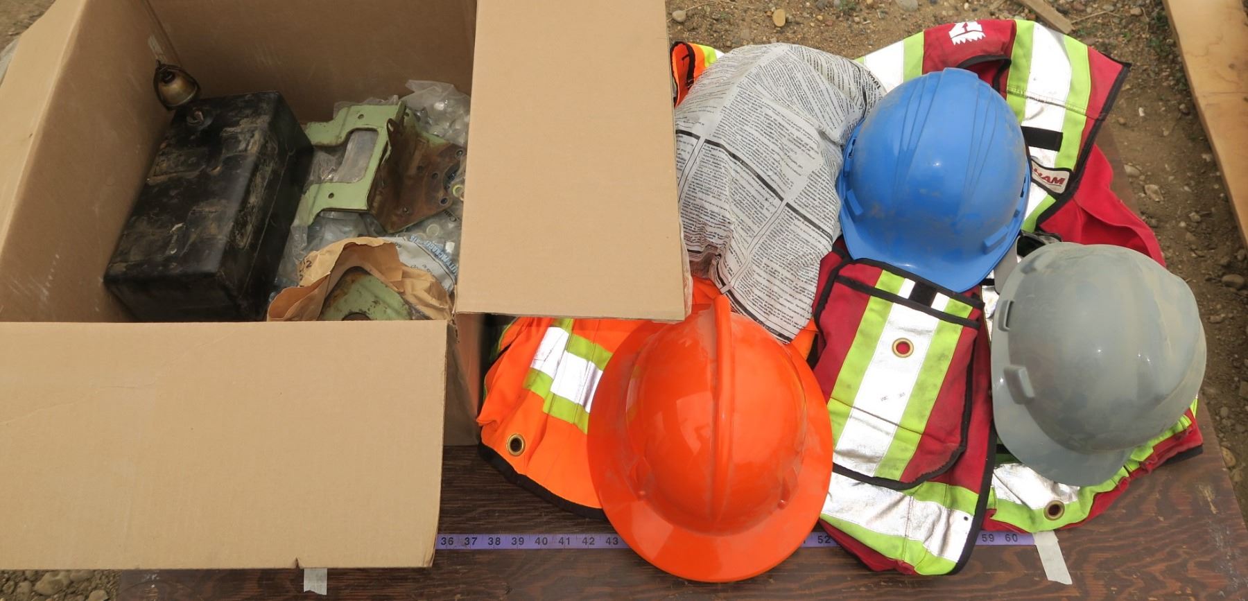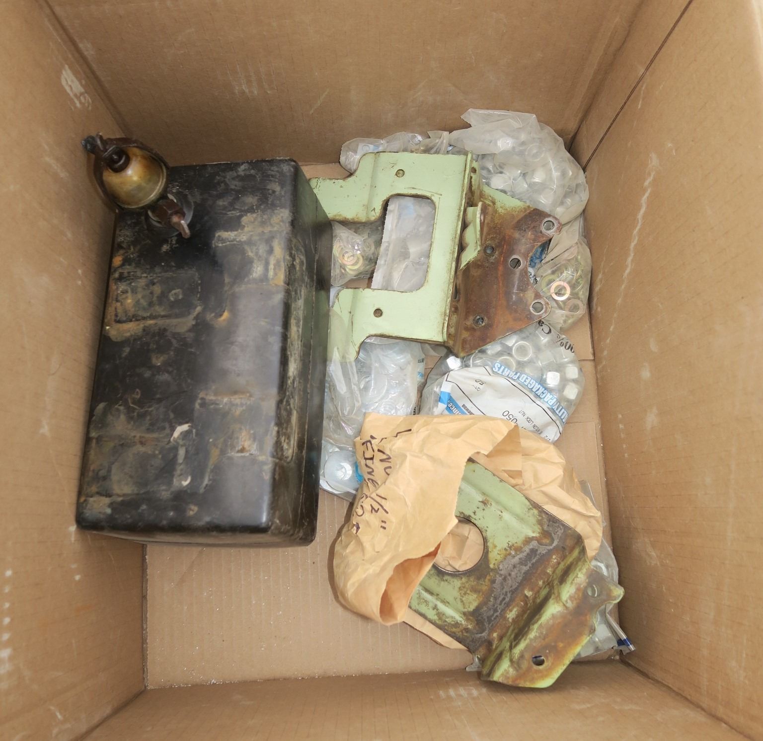 Box of Hard Hats/Nuts/Tecumseh 6HP Gas Tank/Safety Vests
