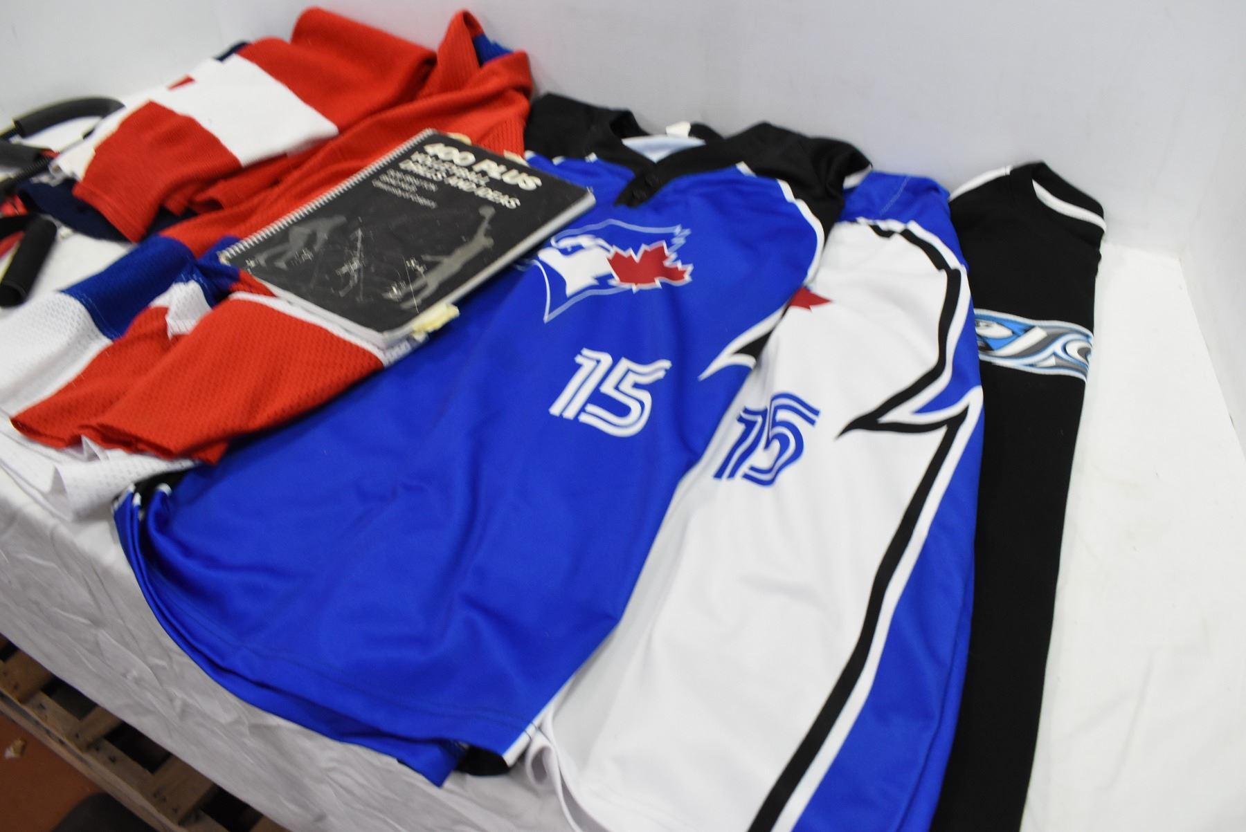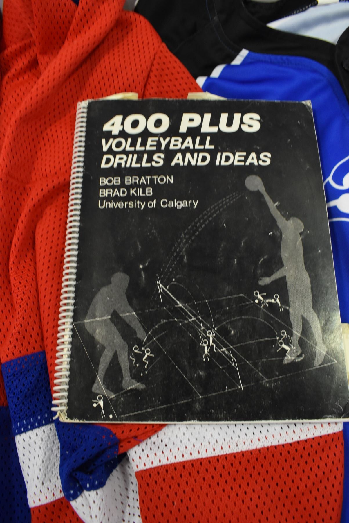 Box of Jerseys, Volleyball Drill Book & Exercise Equipment