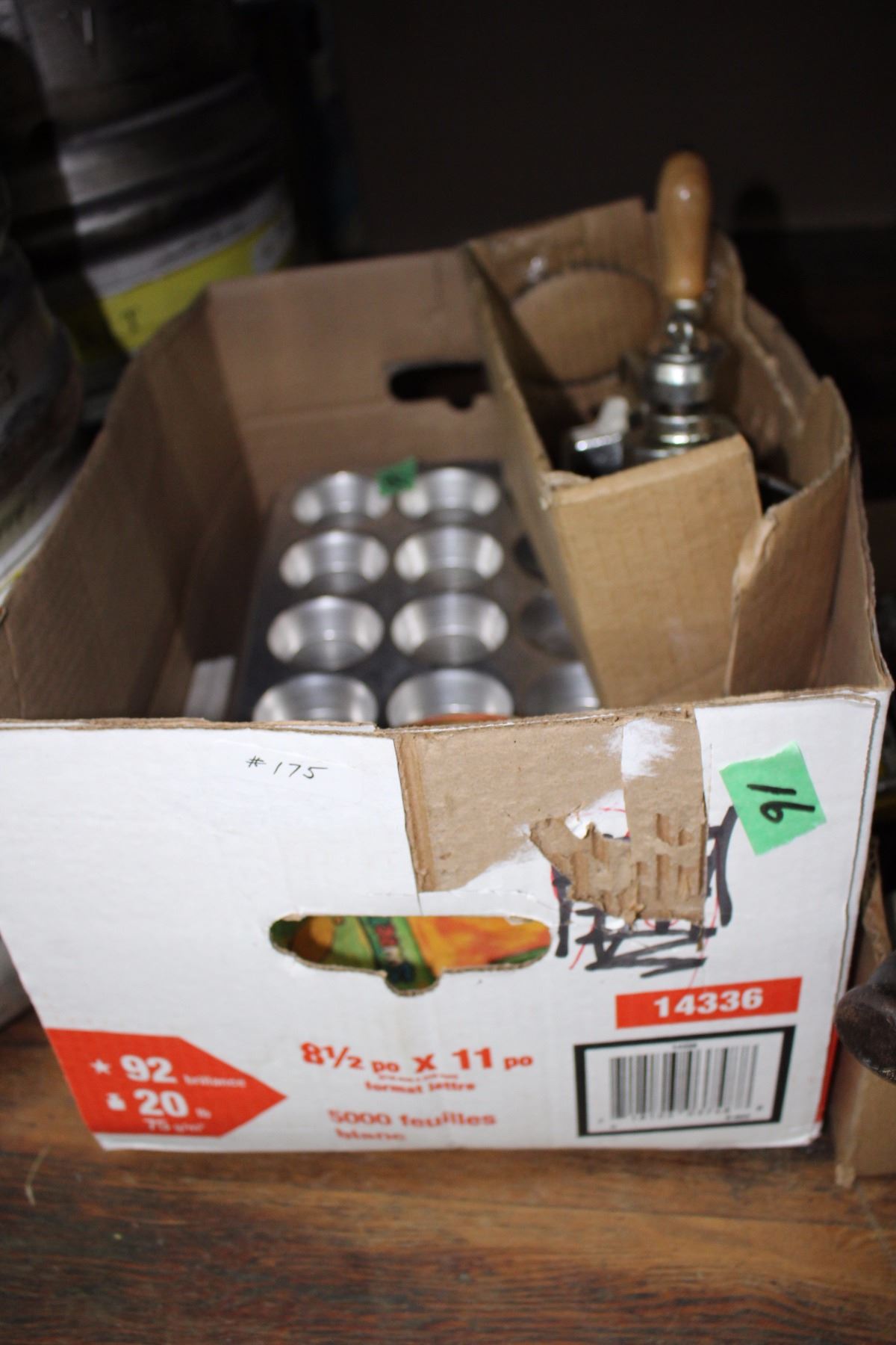 Box of Kitchen Ware (Muffin Tins, Meat Grinder, etc.)