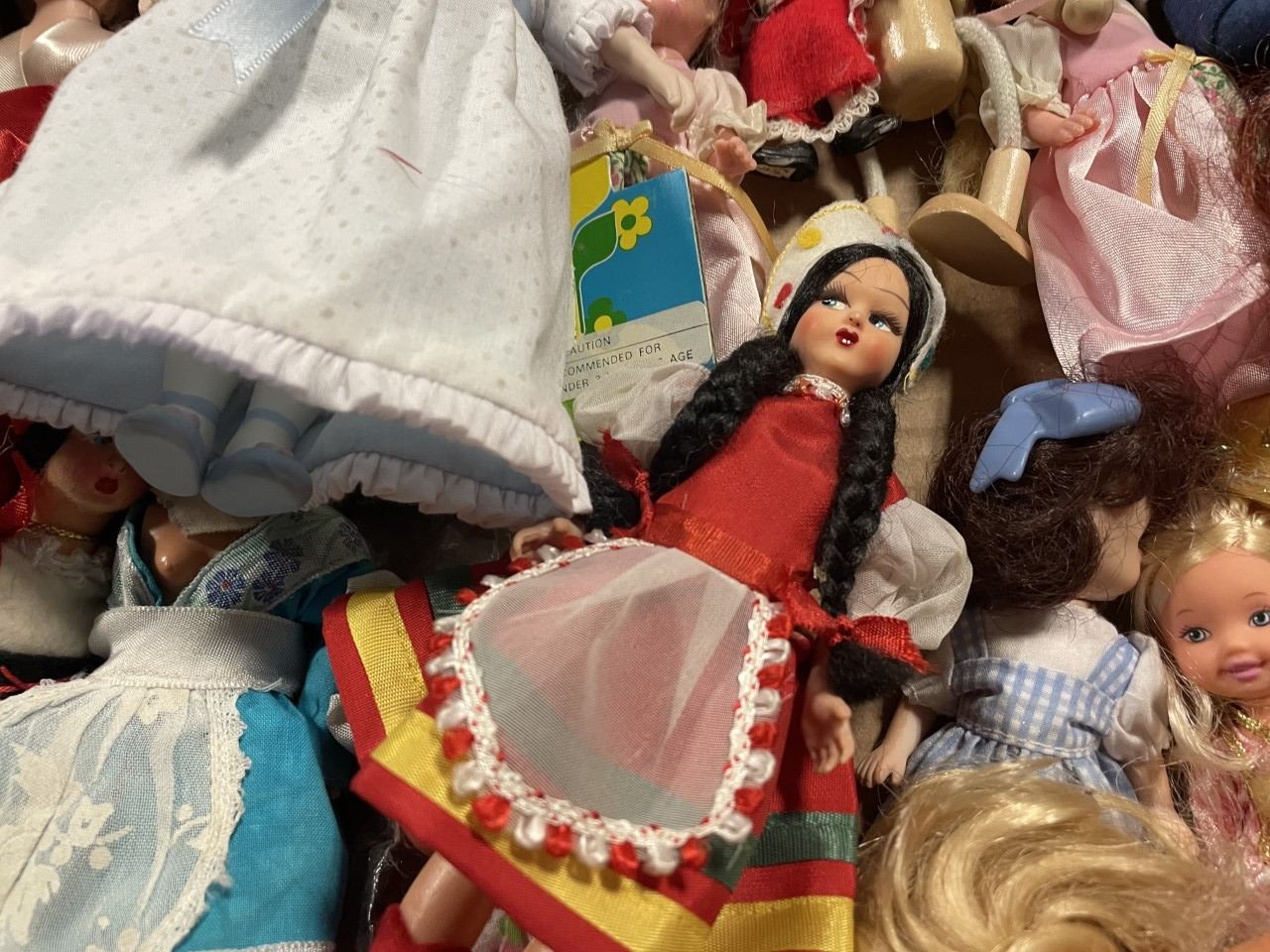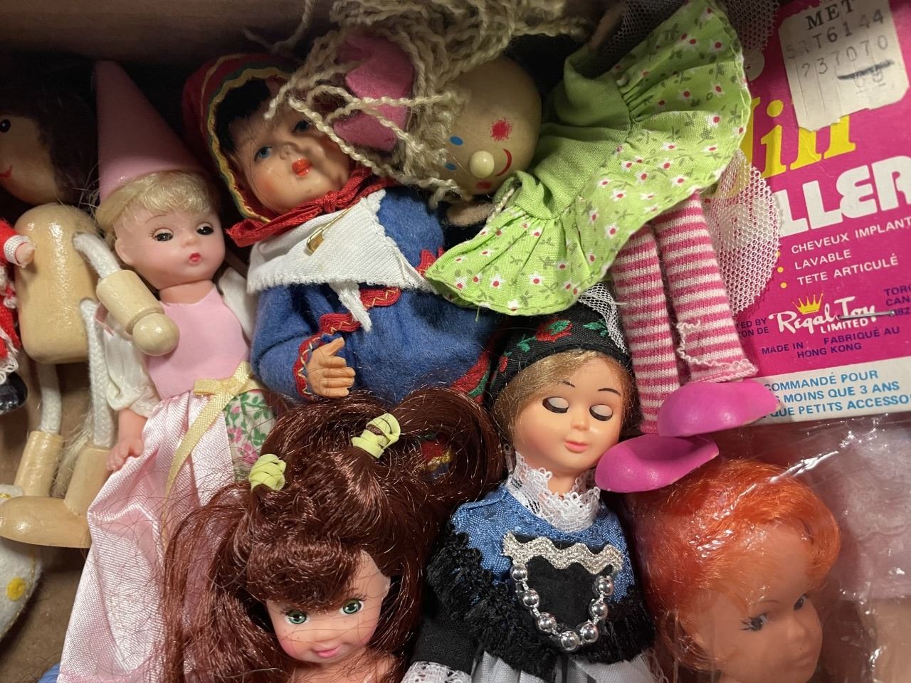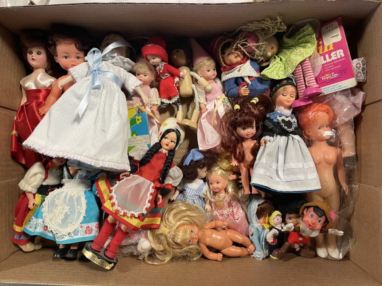 Box of Miniature and small dolls