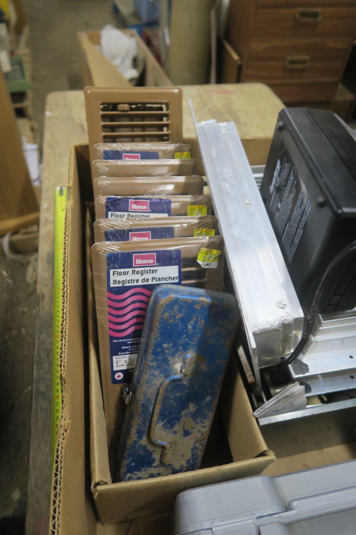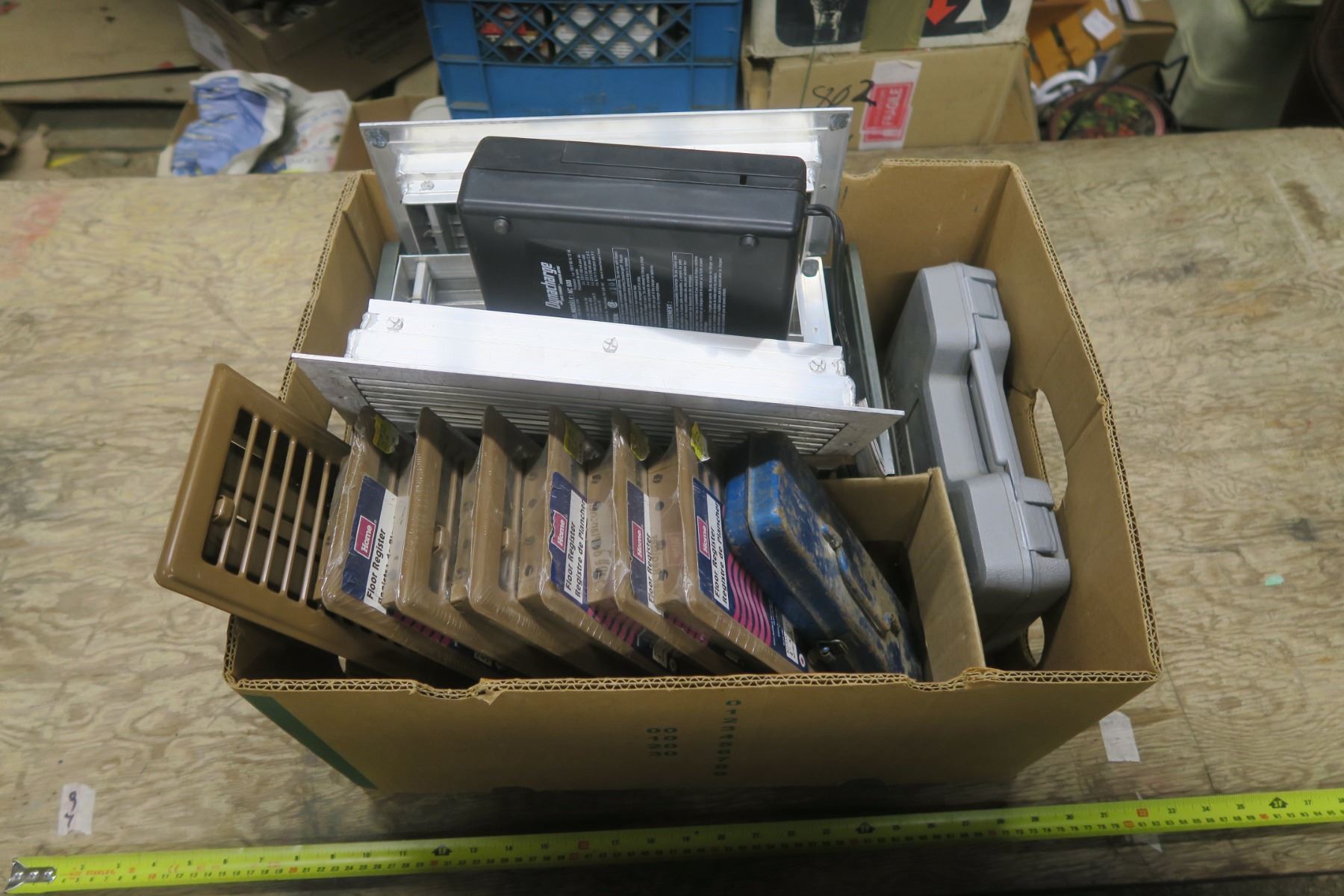 Box of Misc. Floor Vents, Sanding Drums and More