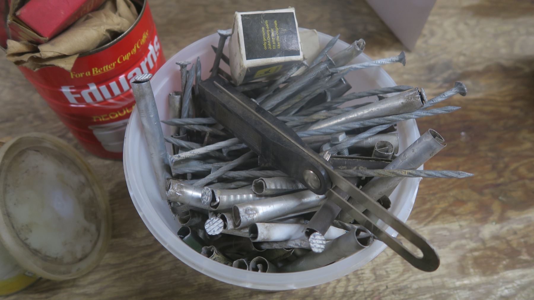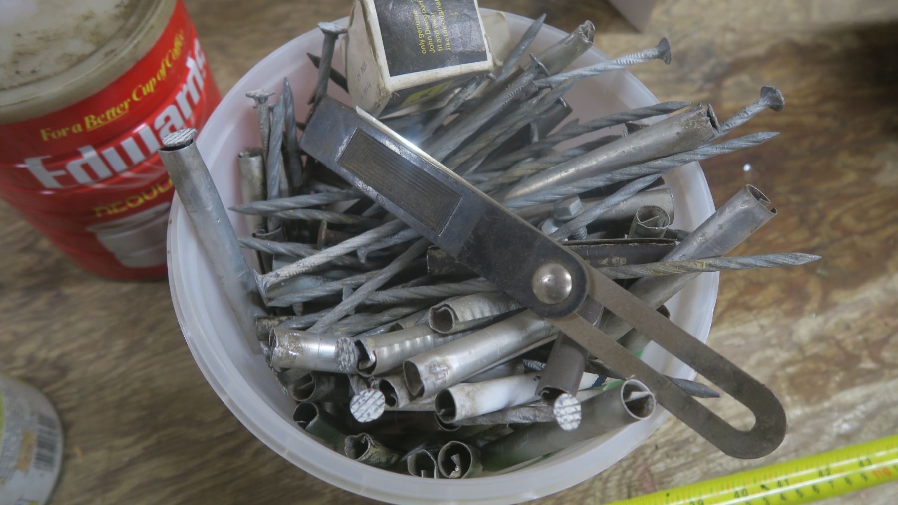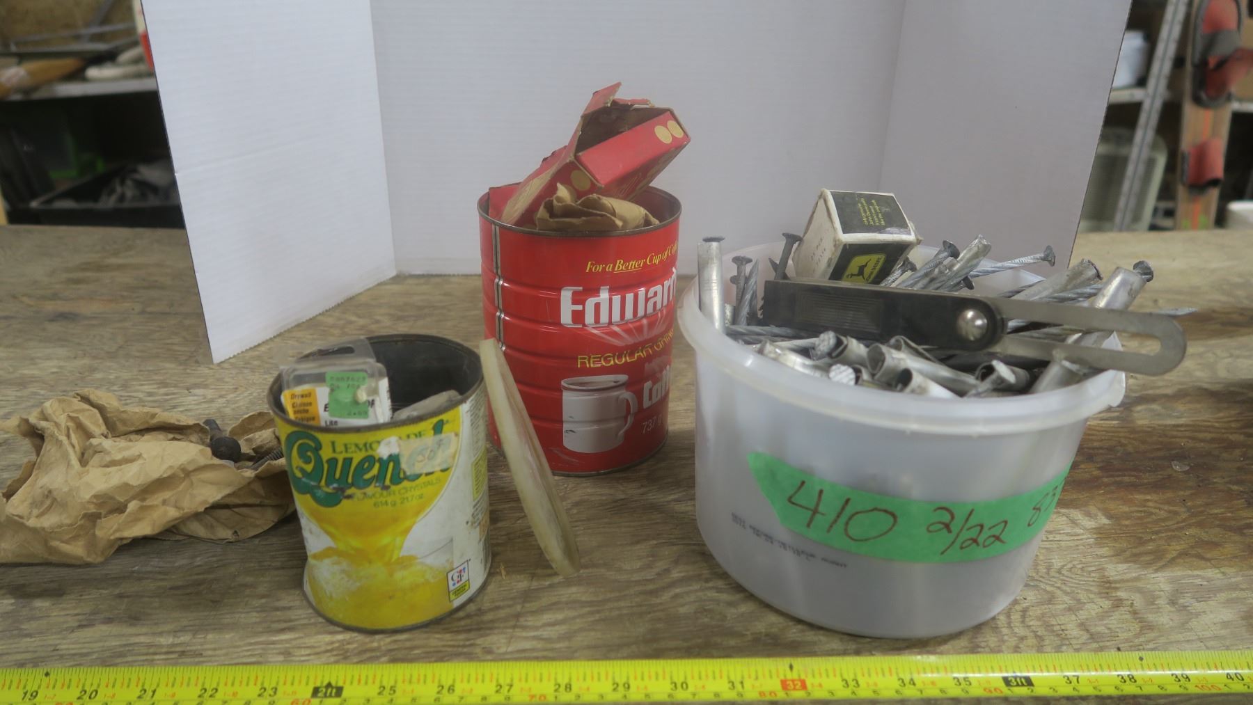 Box of Misc Hardware Including Aluminum Eaves Trough Nails