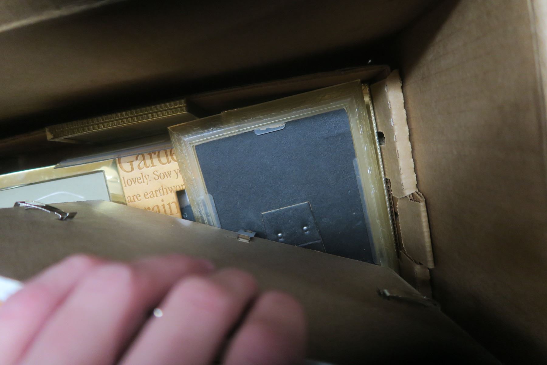 Box of Misc. Items Including Picture Frames & Cassettes