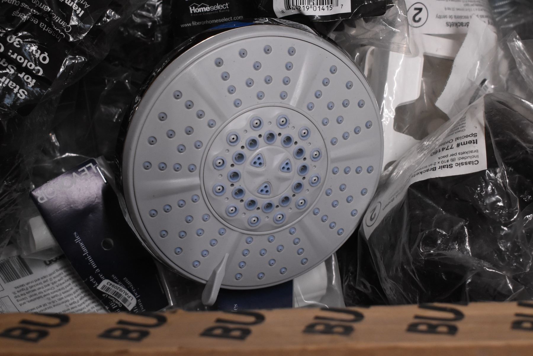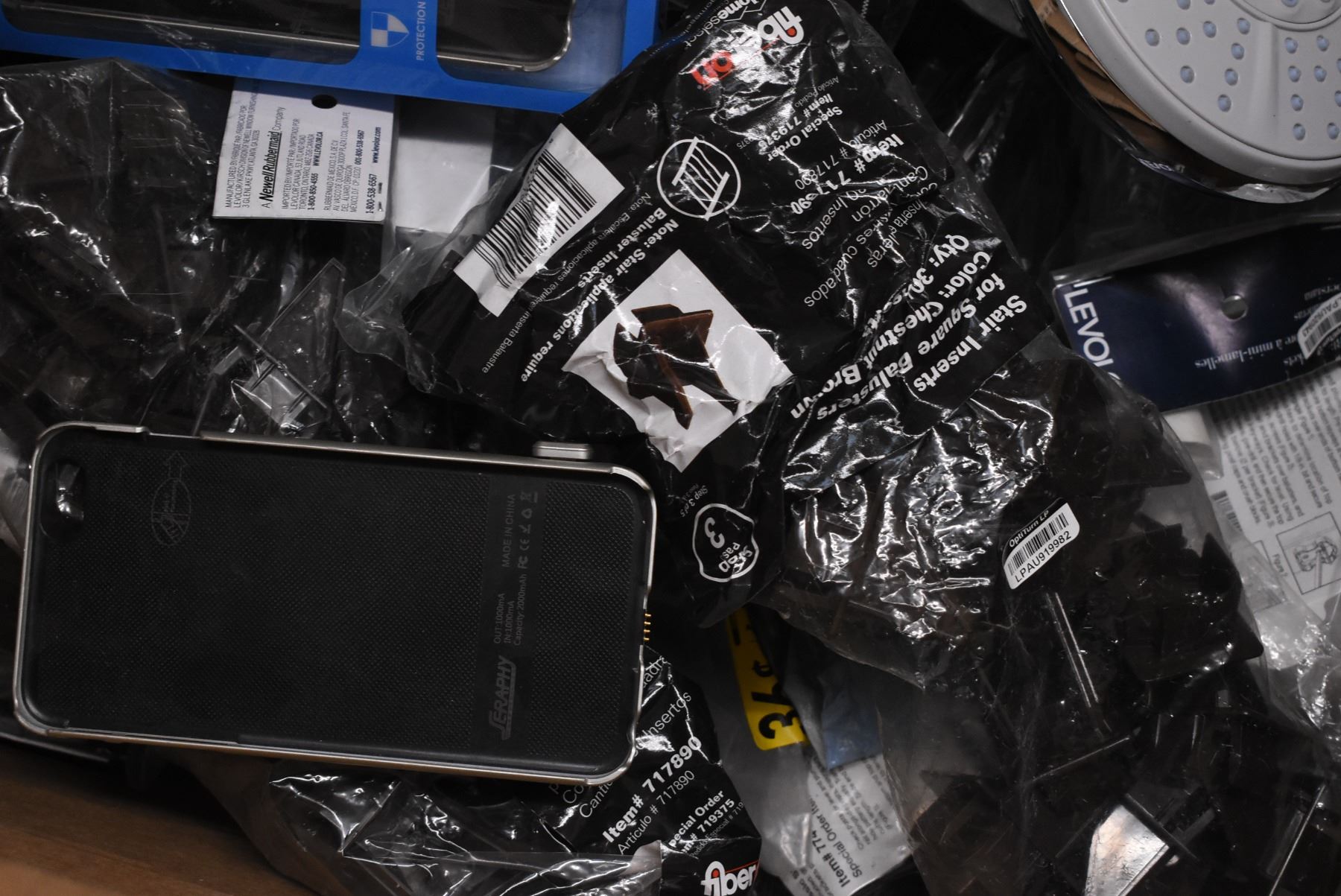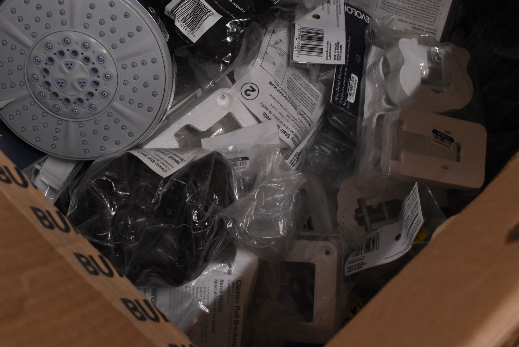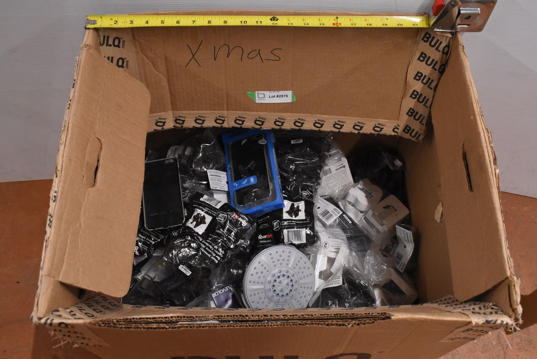 *Box of Misc. Items – Shower Head, Phone Cases, Building Supplies