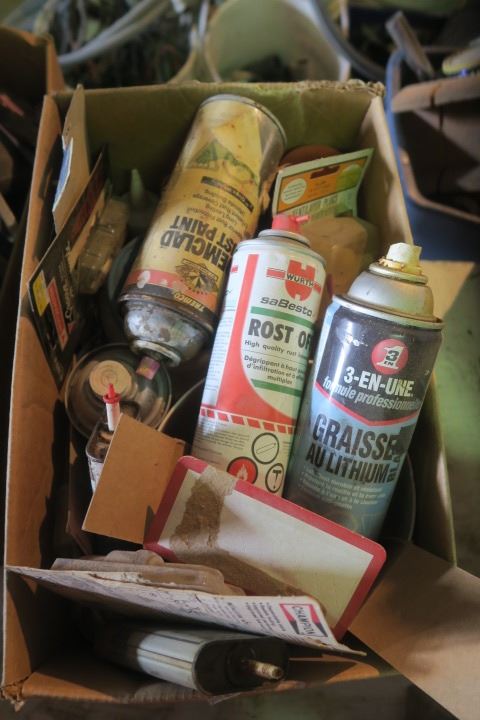 Box of Misc. Spray Lubricants and Other Shop Suppies