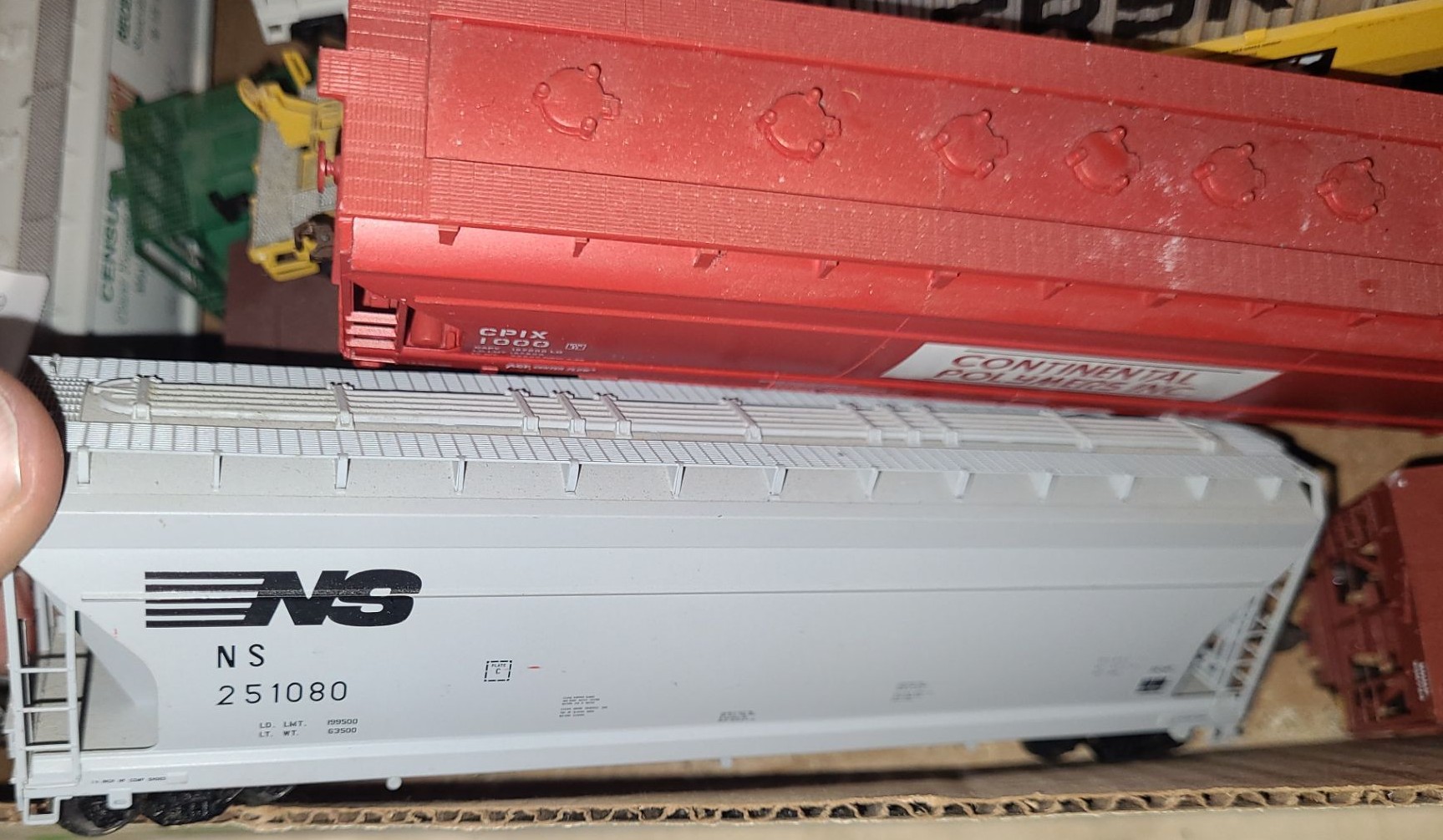 Box of Model Train Parts incl Wheels, Couplers & Trains that Require Small Repairs