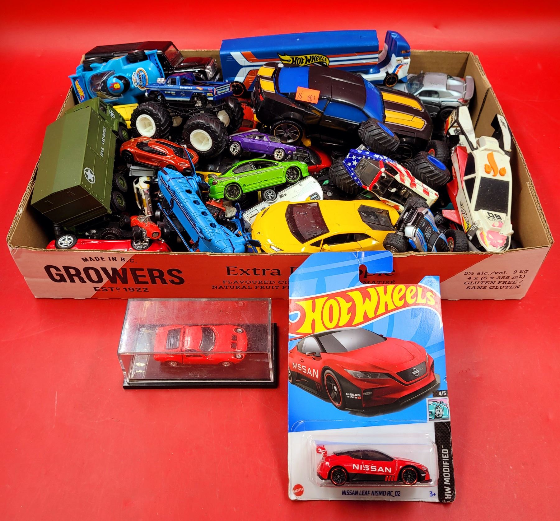 Box of Mostly Diecast Vehicles w/ Hot Wheels