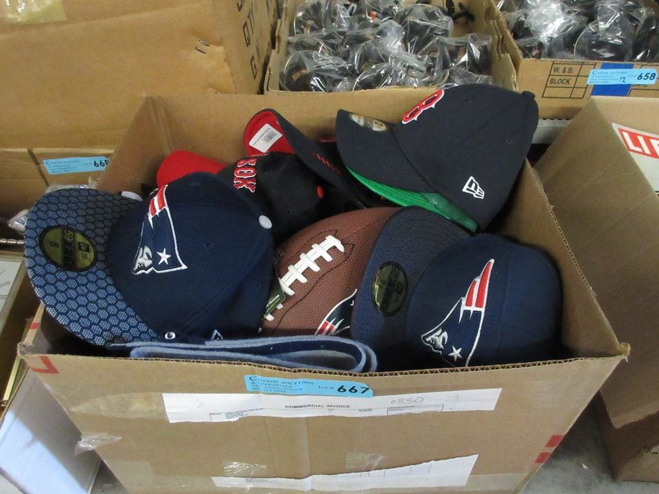 Box of New Sports Caps & Memorabilia