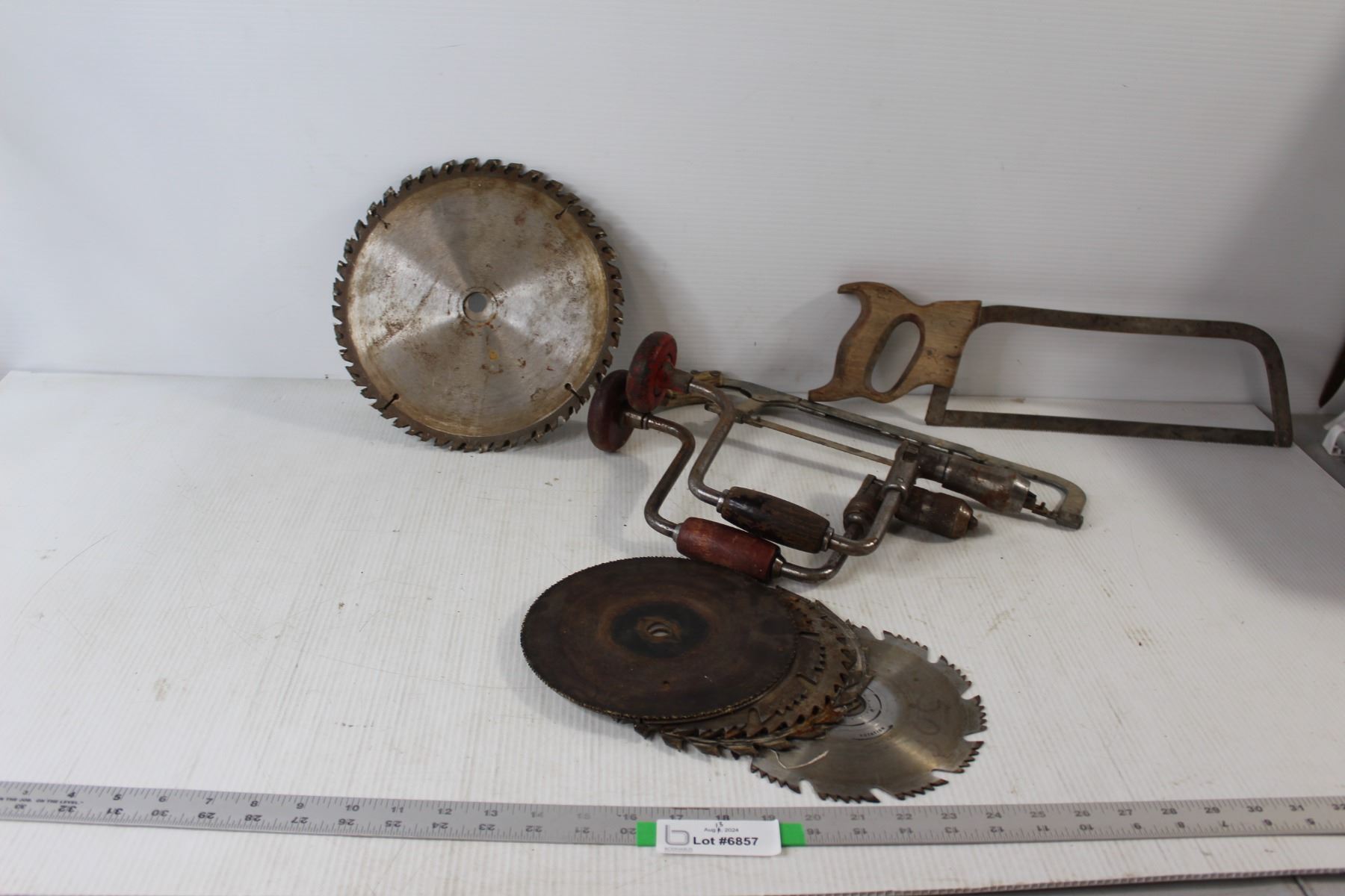 Box of Old Tools - (2) 10" Arc Saw Blades, (8) Circular 7" Saw Blades