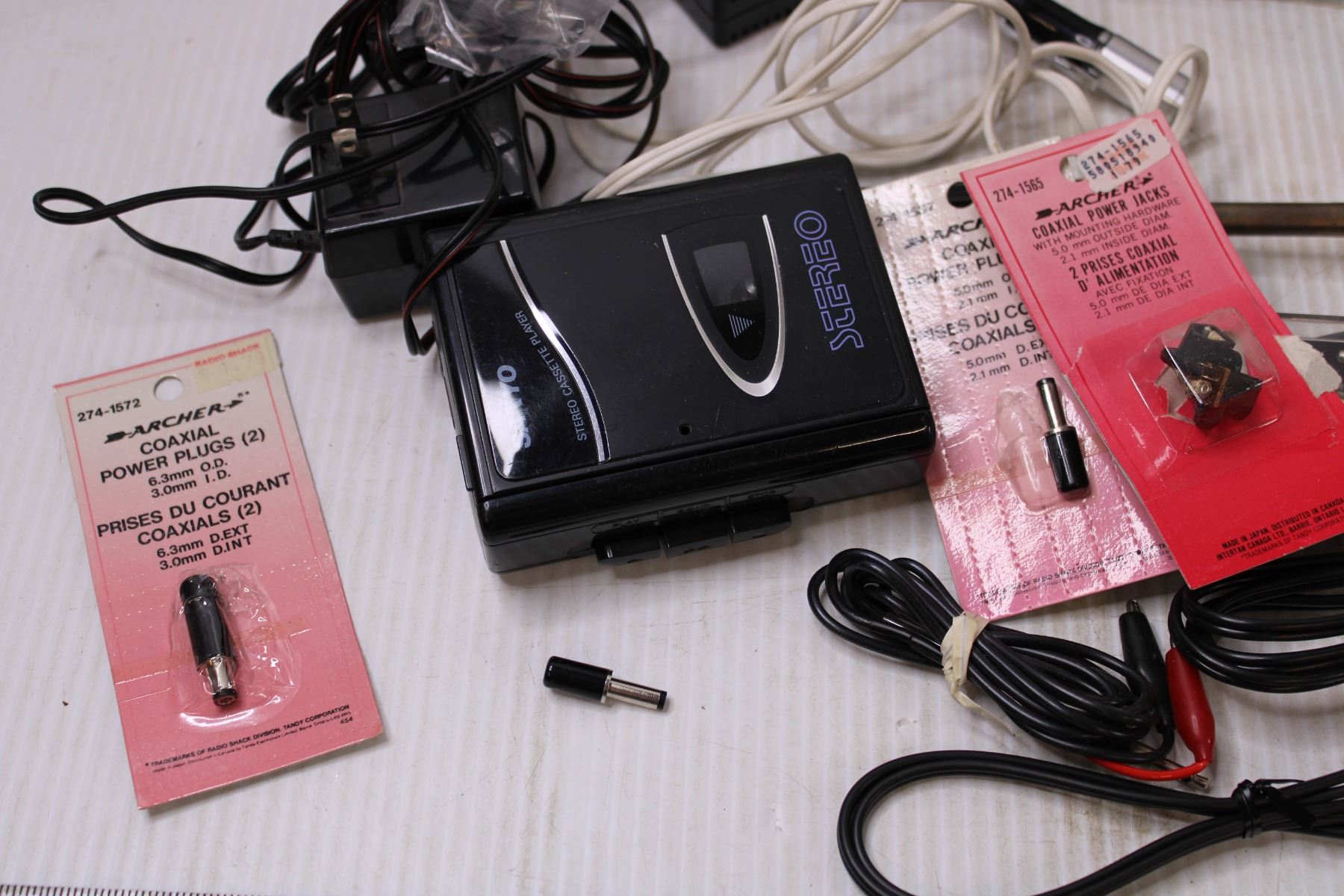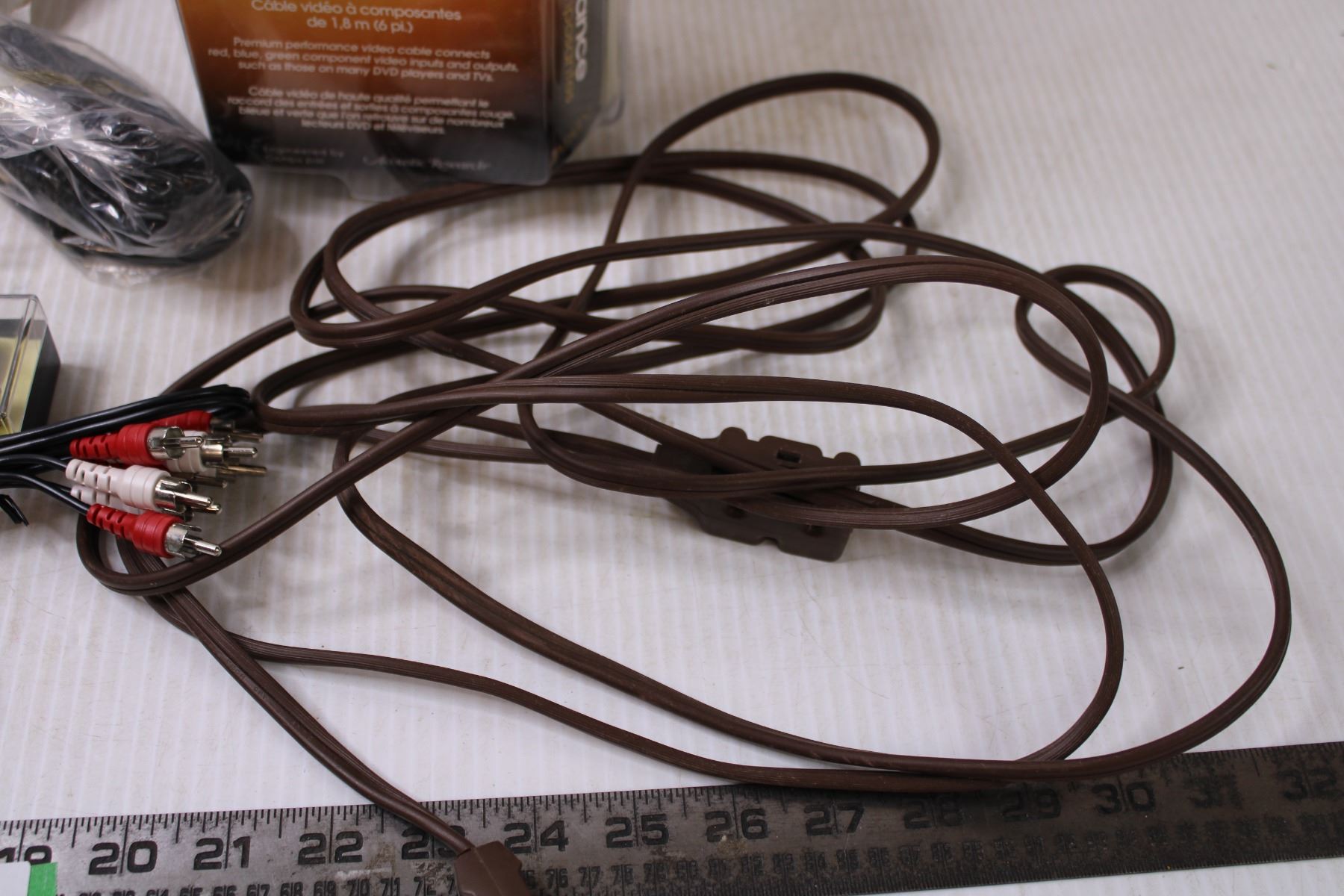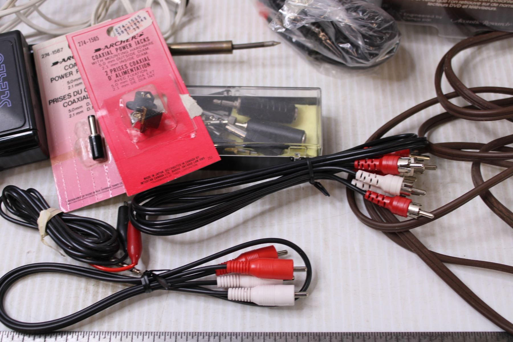 Box of Older Radio and Recording Cables and Parts + Extension Cord