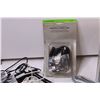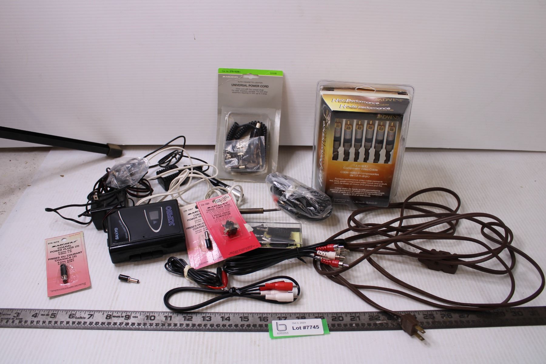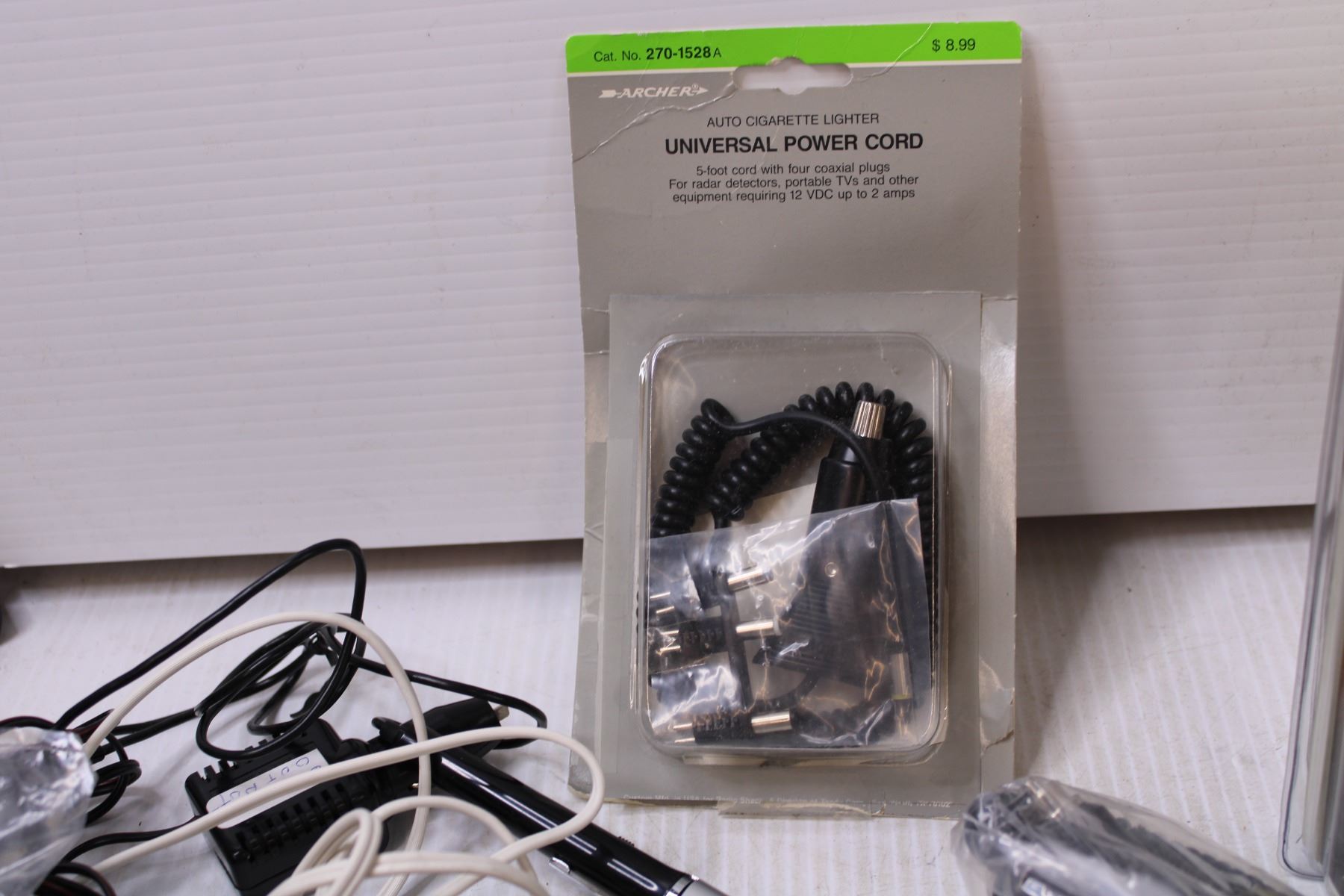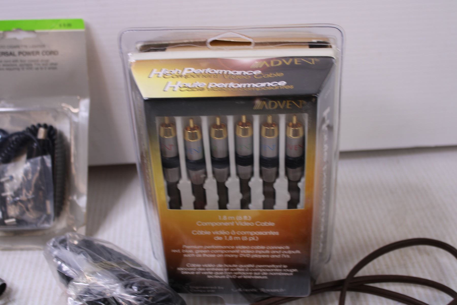 Box of Older Radio and Recording Cables and Parts + Extension Cord