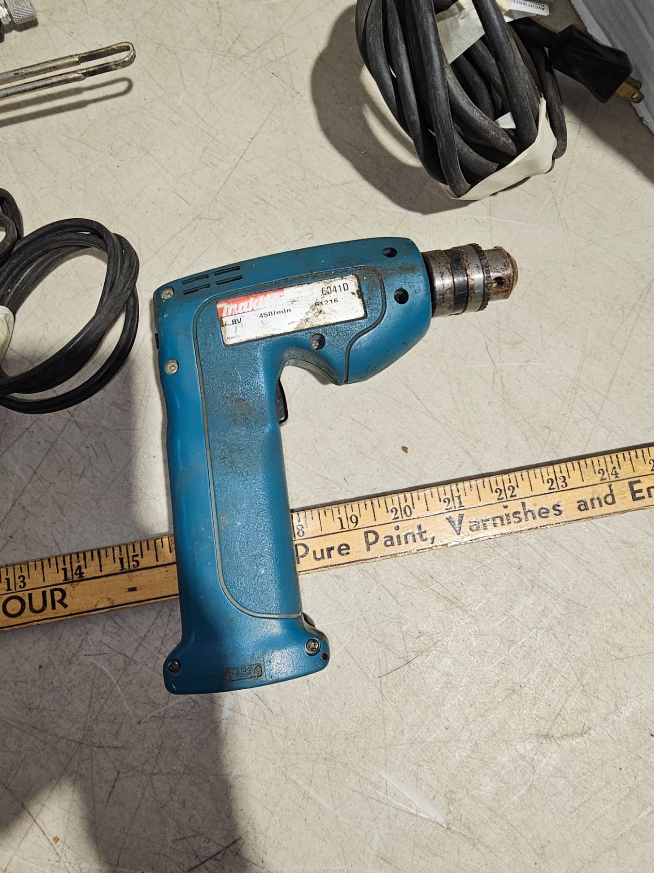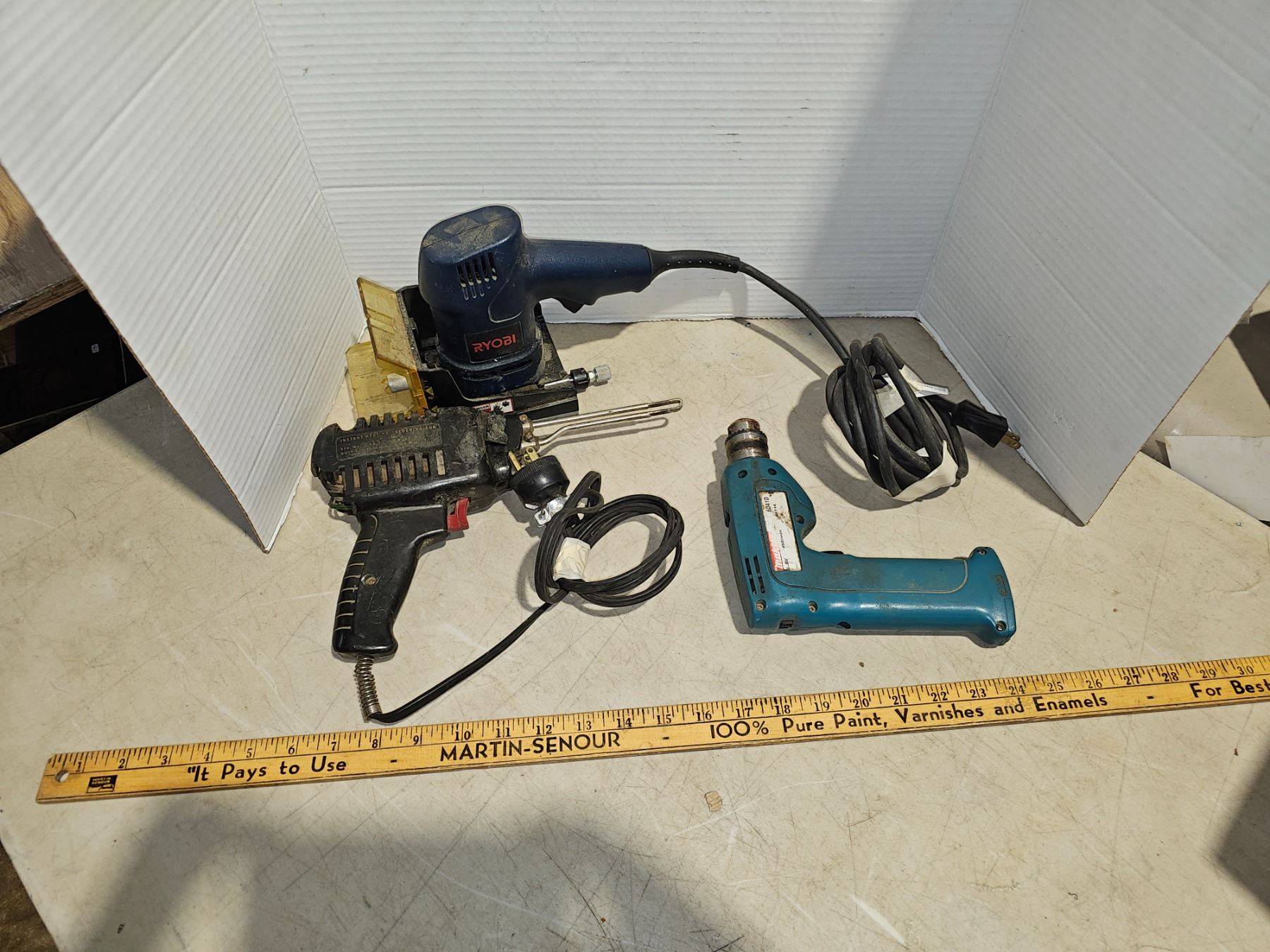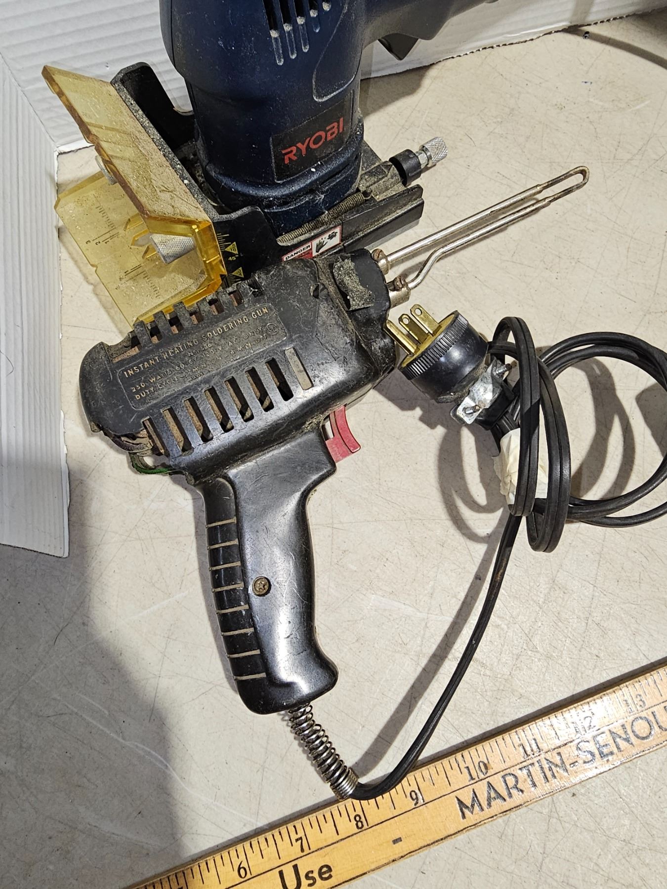 Makita cordless drill, Craftsman soldering gun, Ryobi DBJ 50.