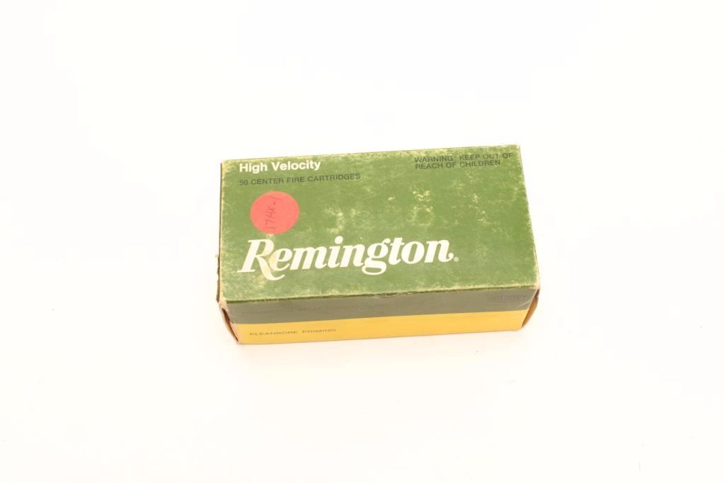 Box of Remington .22 Rem “Jet” ammunition. Est.: $25-$50.